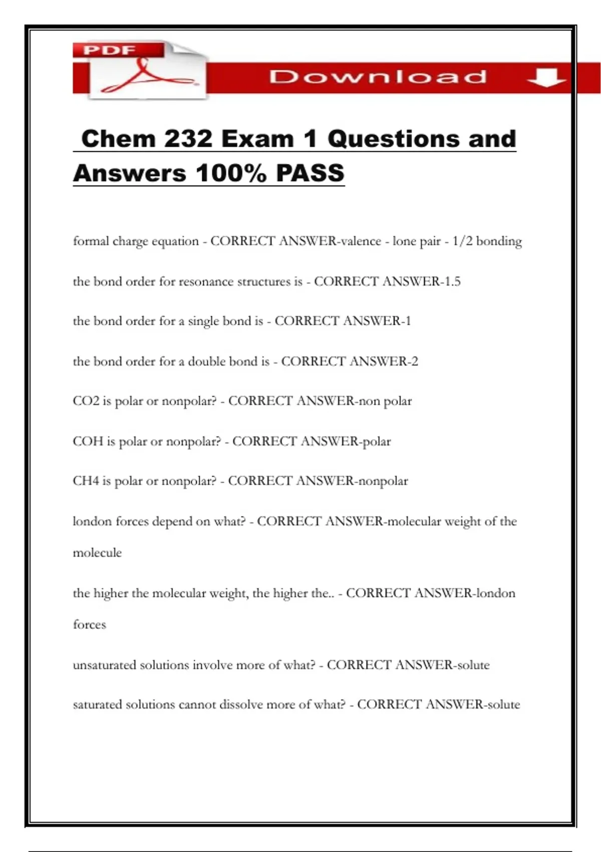 Chem 232 Exam 1 Questions and Answers 100% PASS