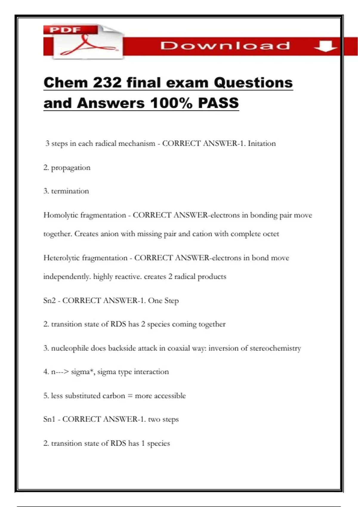 Chem 232 final exam Questions