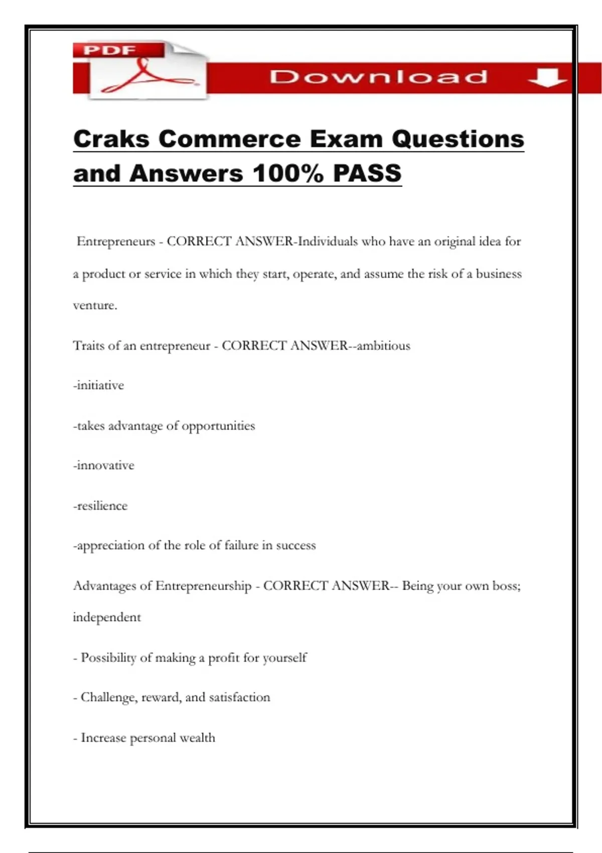 Craks Commerce Exam Questions