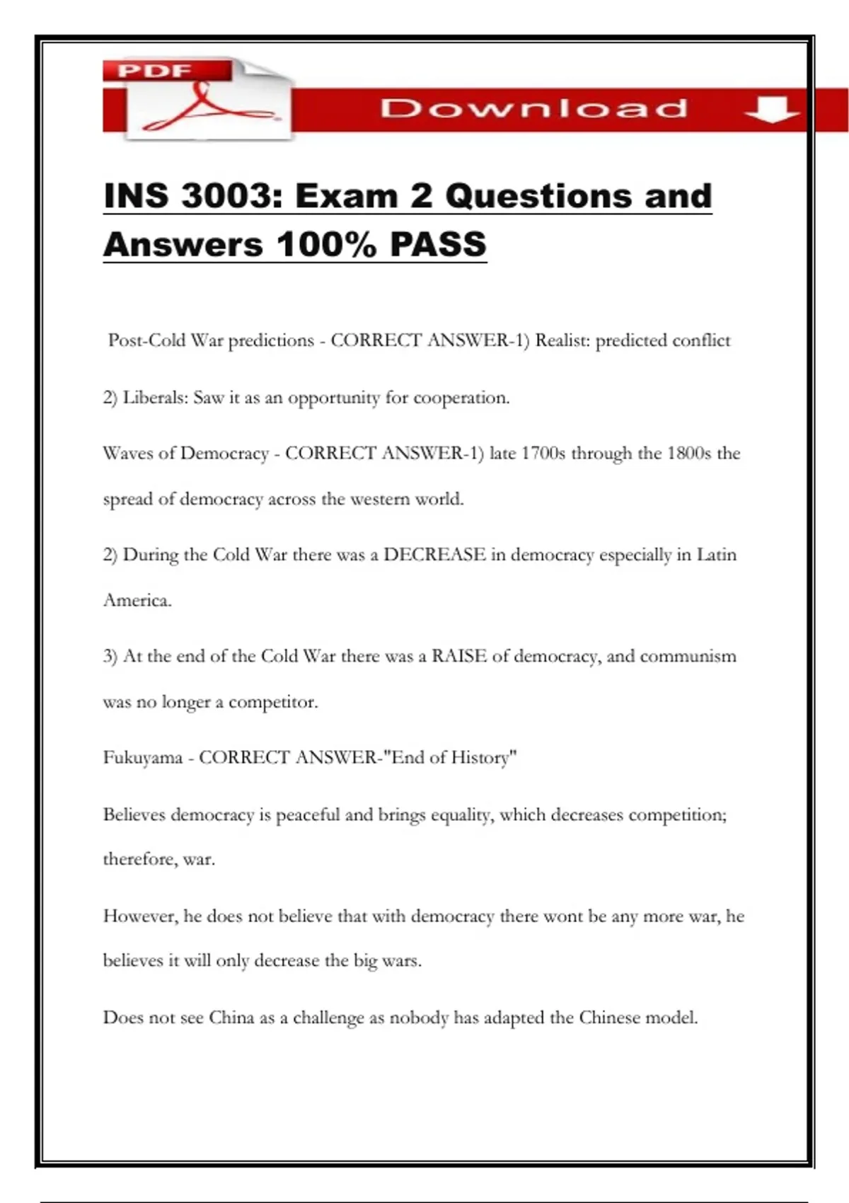Post-Cold War predictions - CORRECT ANSWER-1) Realist: predicted conflict