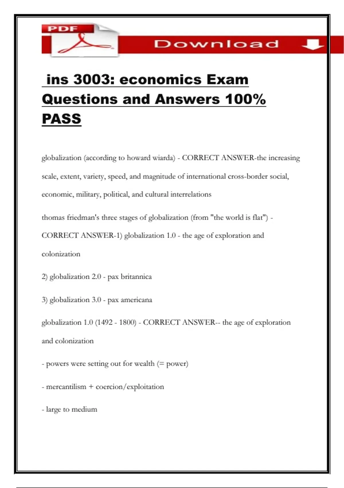 CORRECT ANSWER-1) globalization 1.0 - the age of exploration and