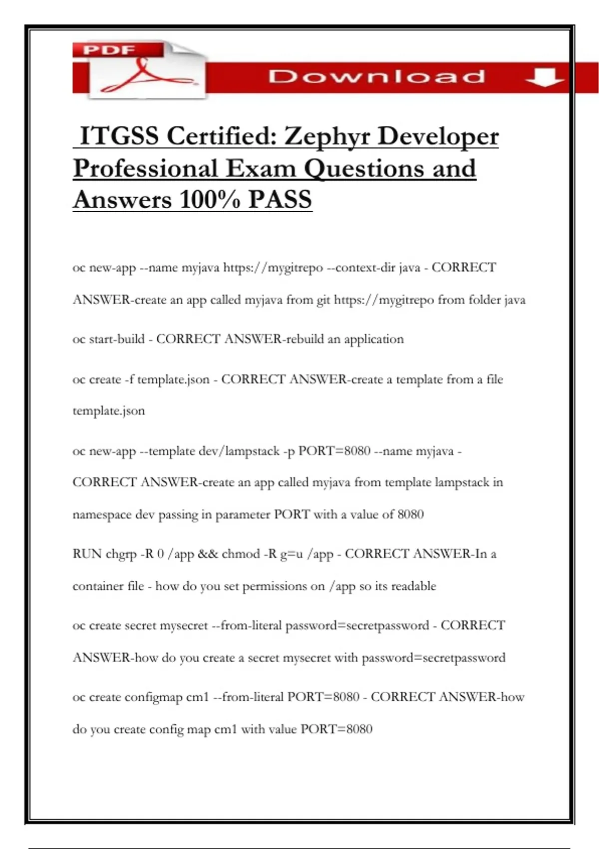 oc create configmap cm1 --from-literal PORT=8080 - CORRECT ANSWER-how