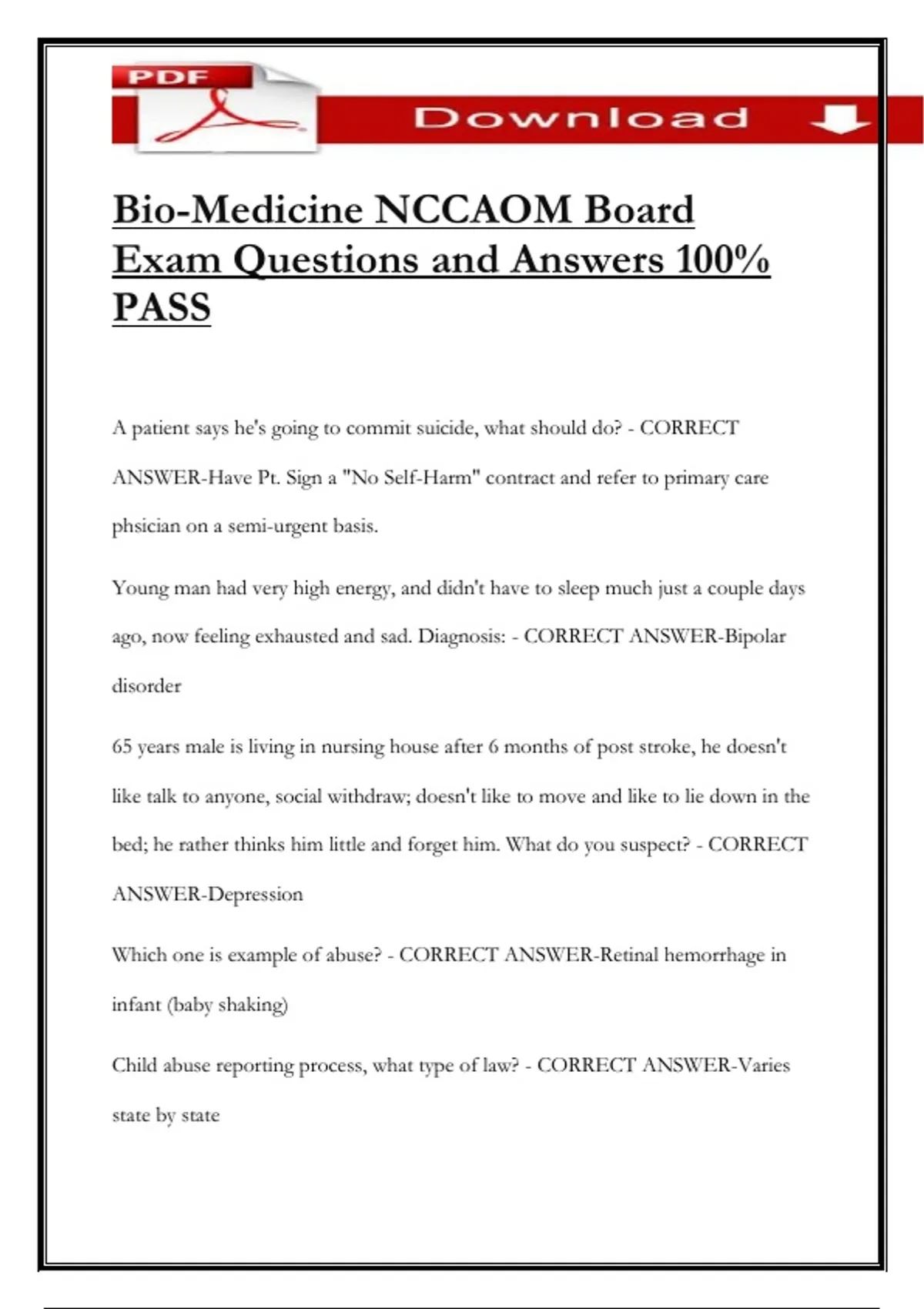 ANSWER-Have Pt. Sign a "No Self-Harm" contract and refer to primary care