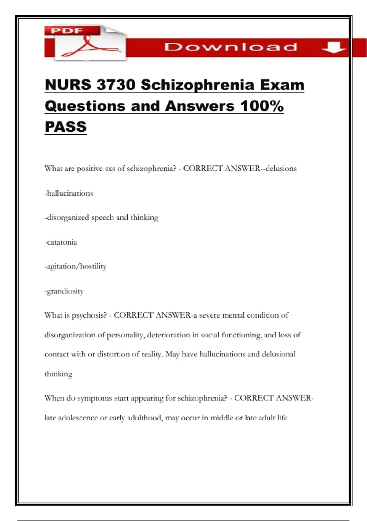 NURS 3730 Schizophrenia Exam