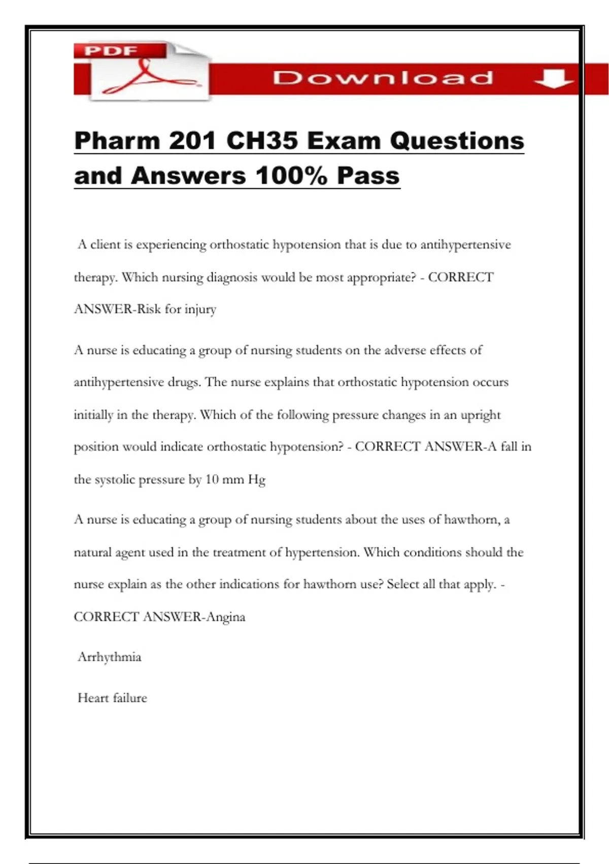 CORRECT ANSWER-Angina