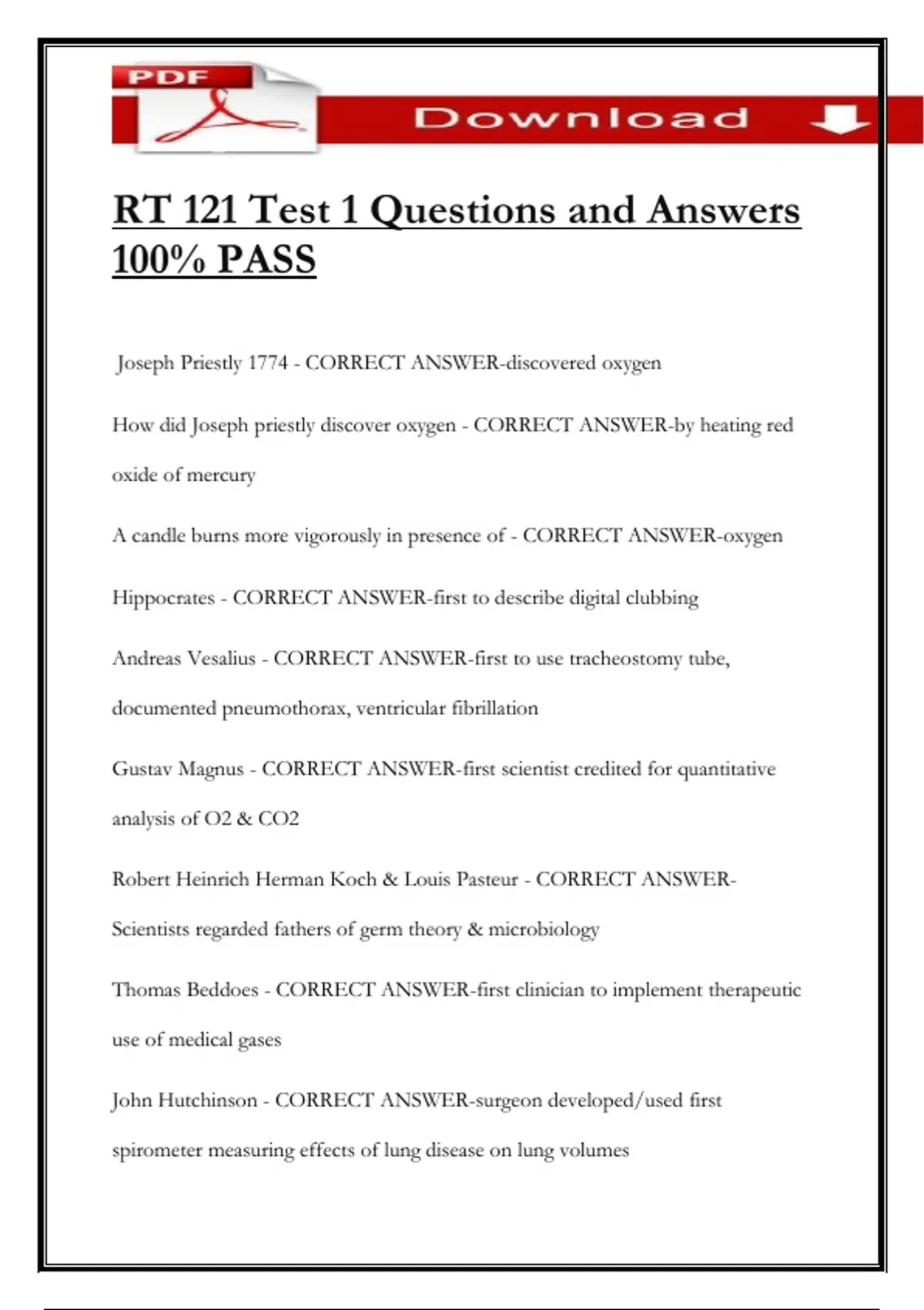 Joseph Priestly 1774 - CORRECT ANSWER-discovered oxygen