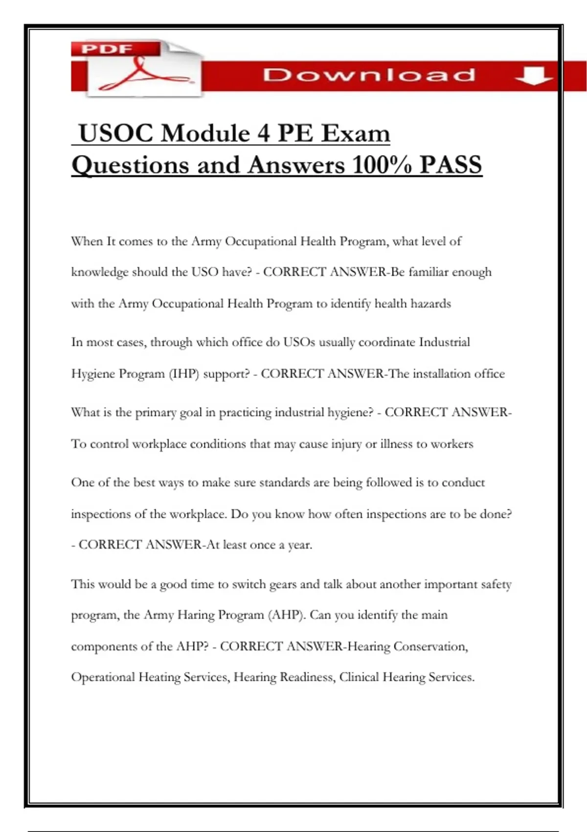USOC Module 4 PE Exam Questions and Answers 100% PASS