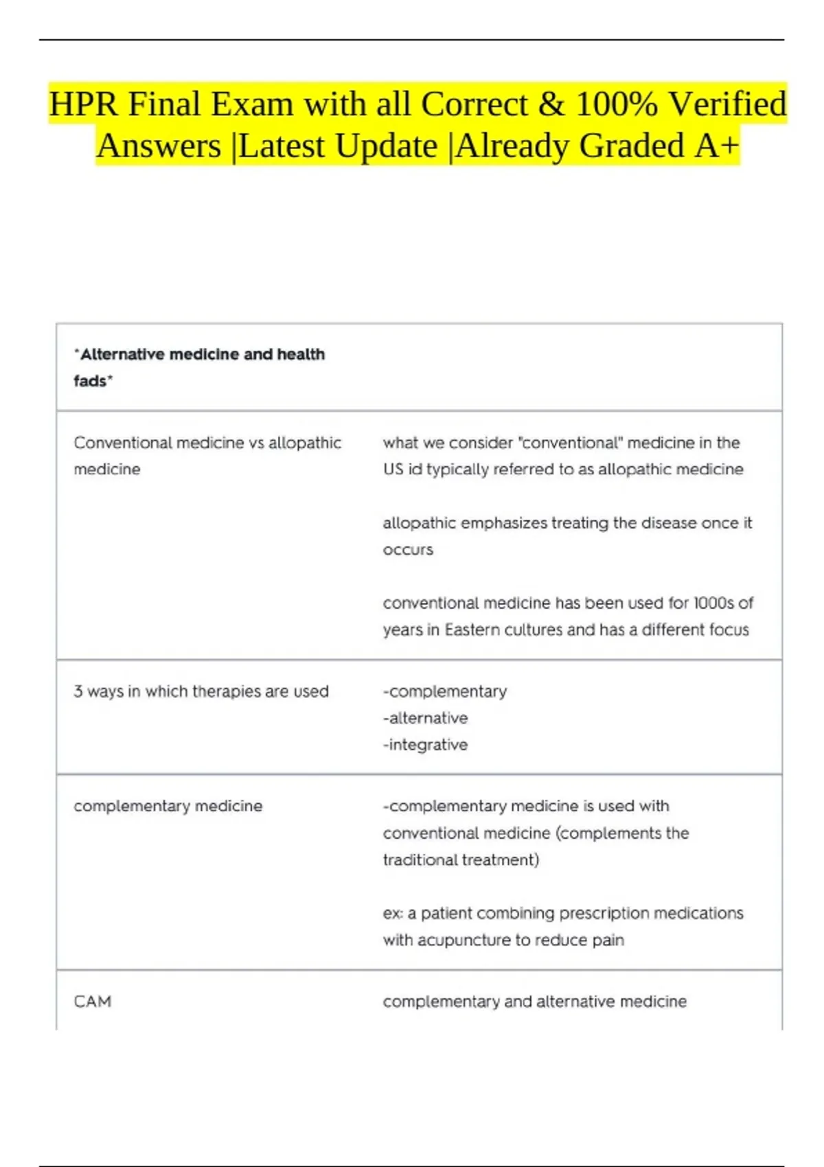 HPR Final Exam with all Correct & 100% Verified Answers |Latest Update |Already Graded A+