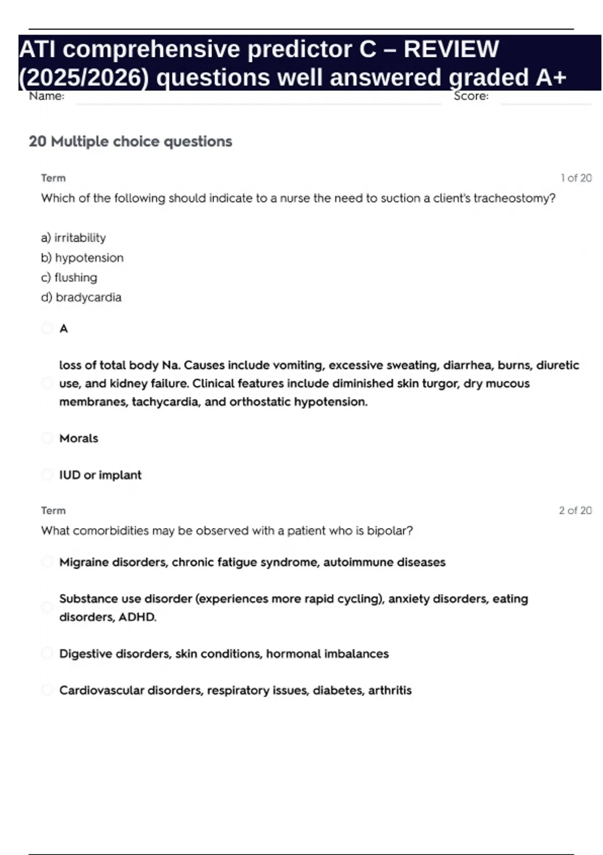 ATI comprehensive predictor C – REVIEW (2025/2026) questions well answered graded A+