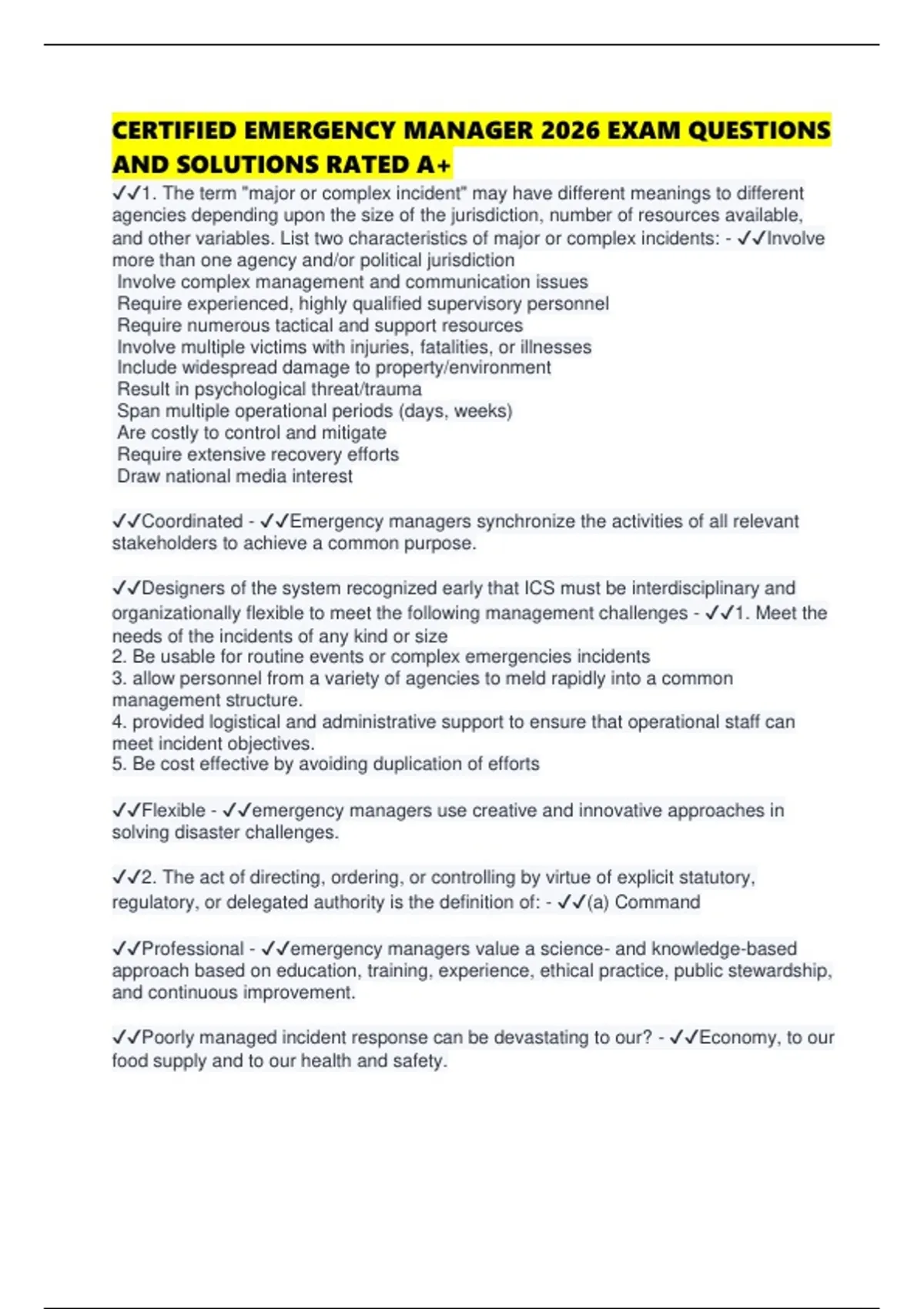 CERTIFIED EMERGENCY MANAGER 2026 EXAM QUESTIONS AND SOLUTIONS RATED A+