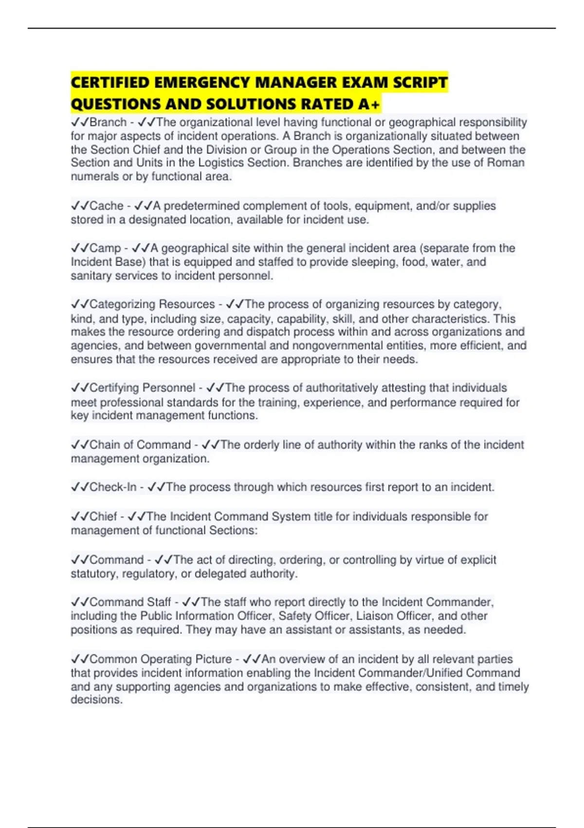 ✔✔Check-In - ✔✔The process through which resources first report to an incident.
