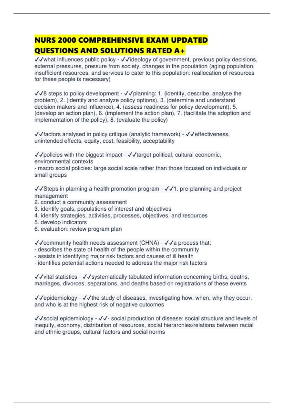 NURS 2000 COMPREHENSIVE EXAM UPDATED QUESTIONS AND SOLUTIONS RATED A+