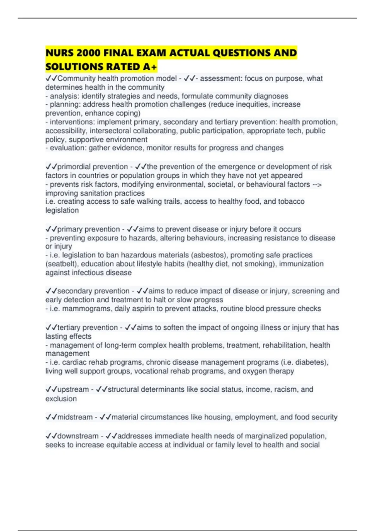 ✔✔upstream - ✔✔structural determinants like social status, income, racism, and