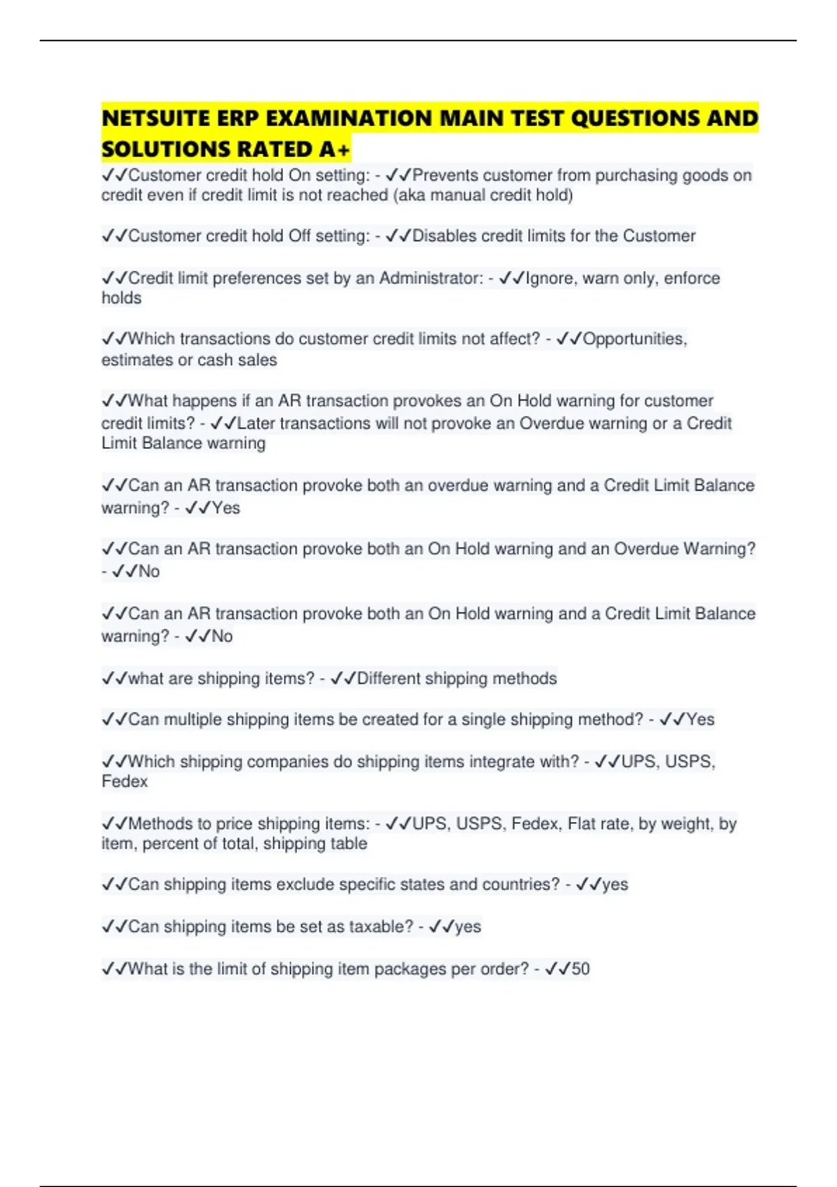 NETSUITE ERP EXAMINATION MAIN TEST QUESTIONS AND SOLUTIONS RATED A+