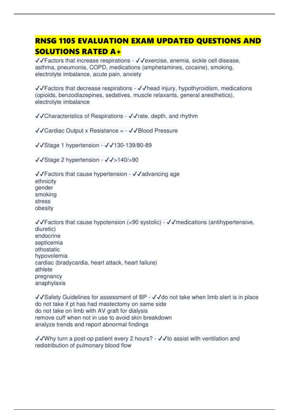 ✔✔Why turn a post-op patient every 2 hours? - ✔✔to assist with ventilation and