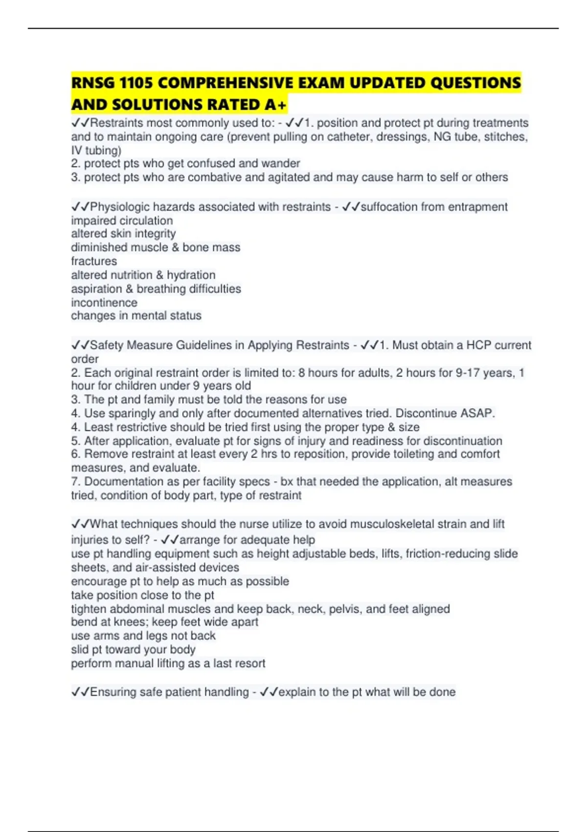 ✔✔Ensuring safe patient handling - ✔✔explain to the pt what will be done