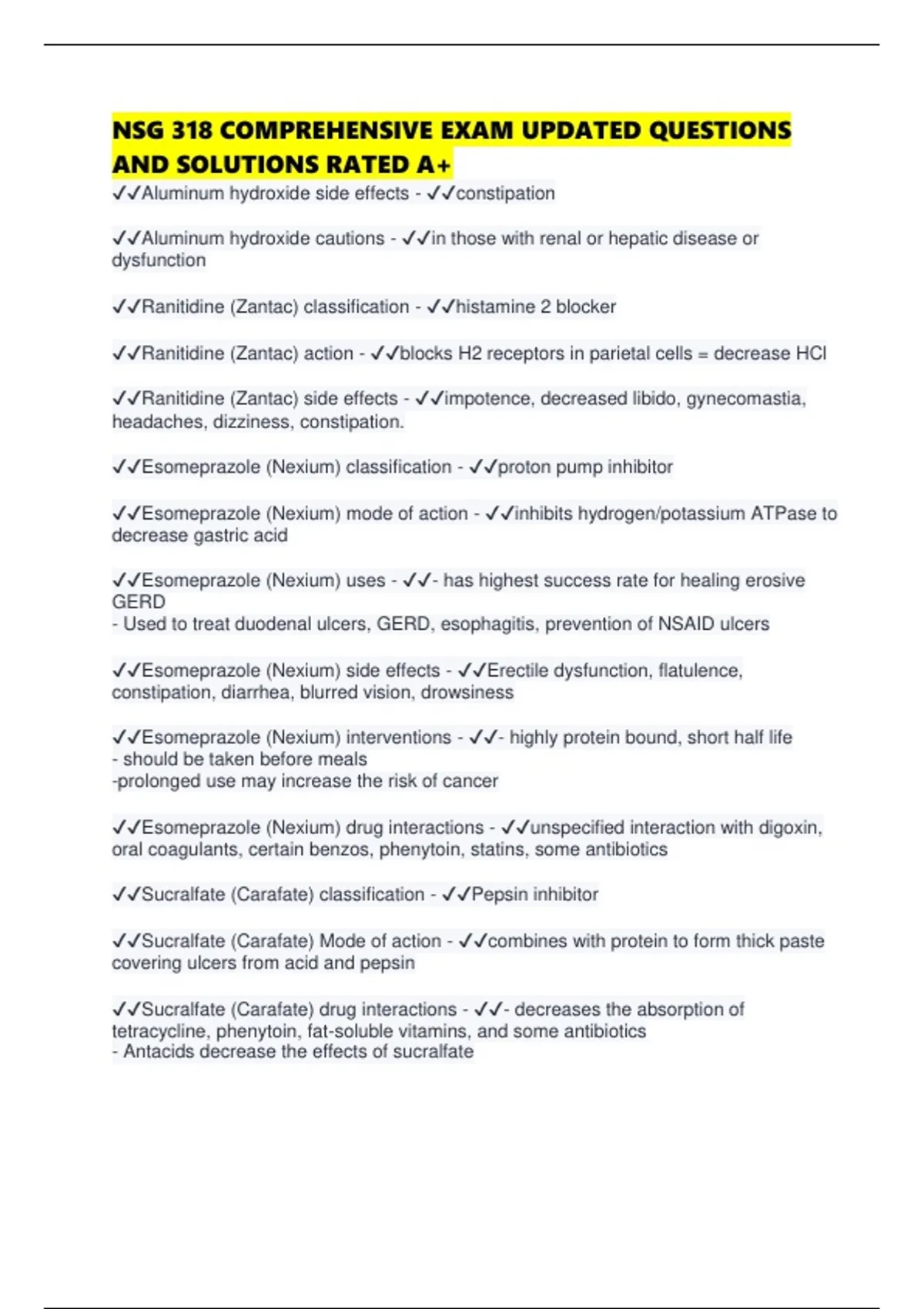 ✔✔Esomeprazole (Nexium) interventions - ✔✔- highly protein bound, short half life