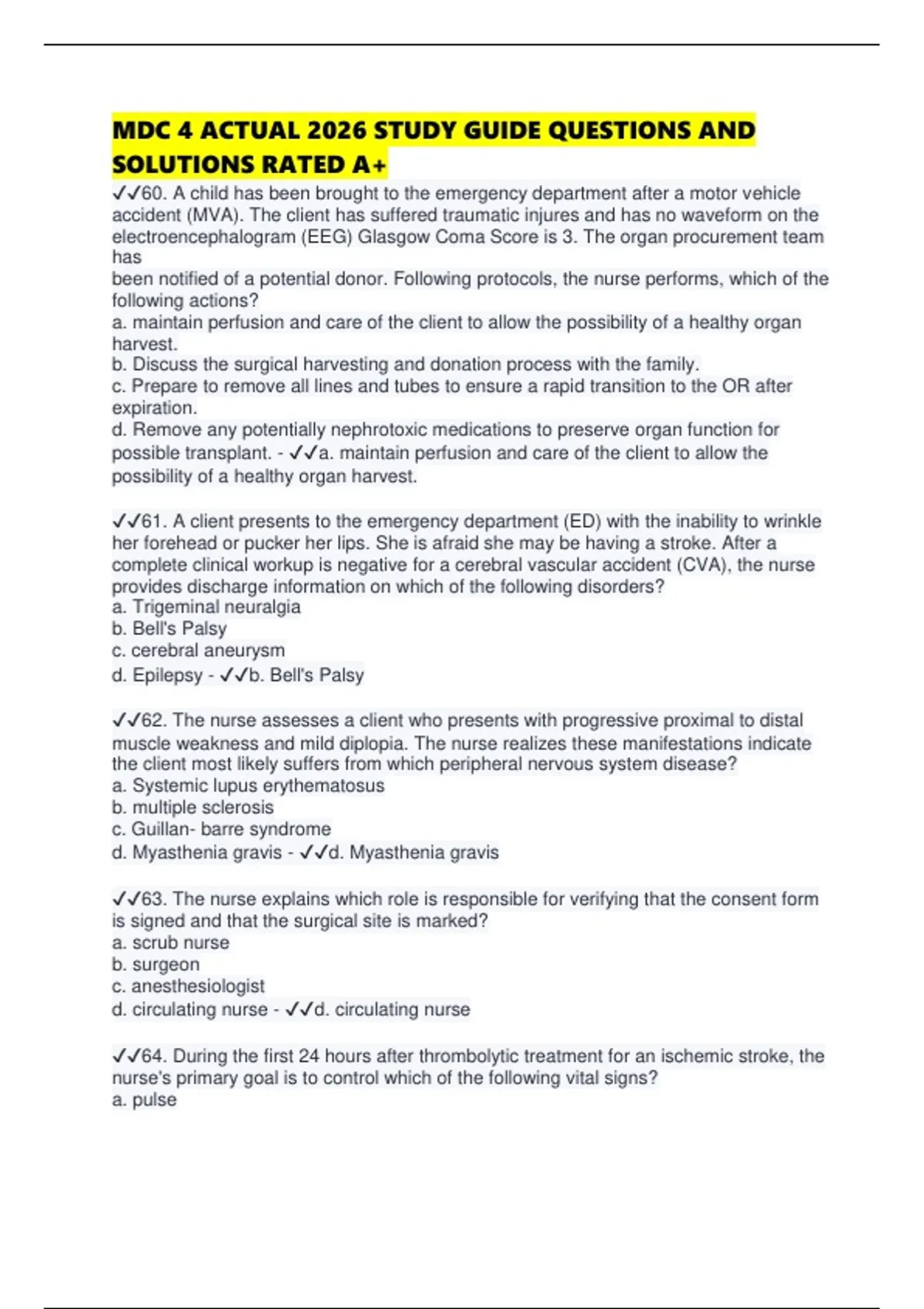 ✔✔61. A client presents to the emergency department (ED) with the inability to wrinkle