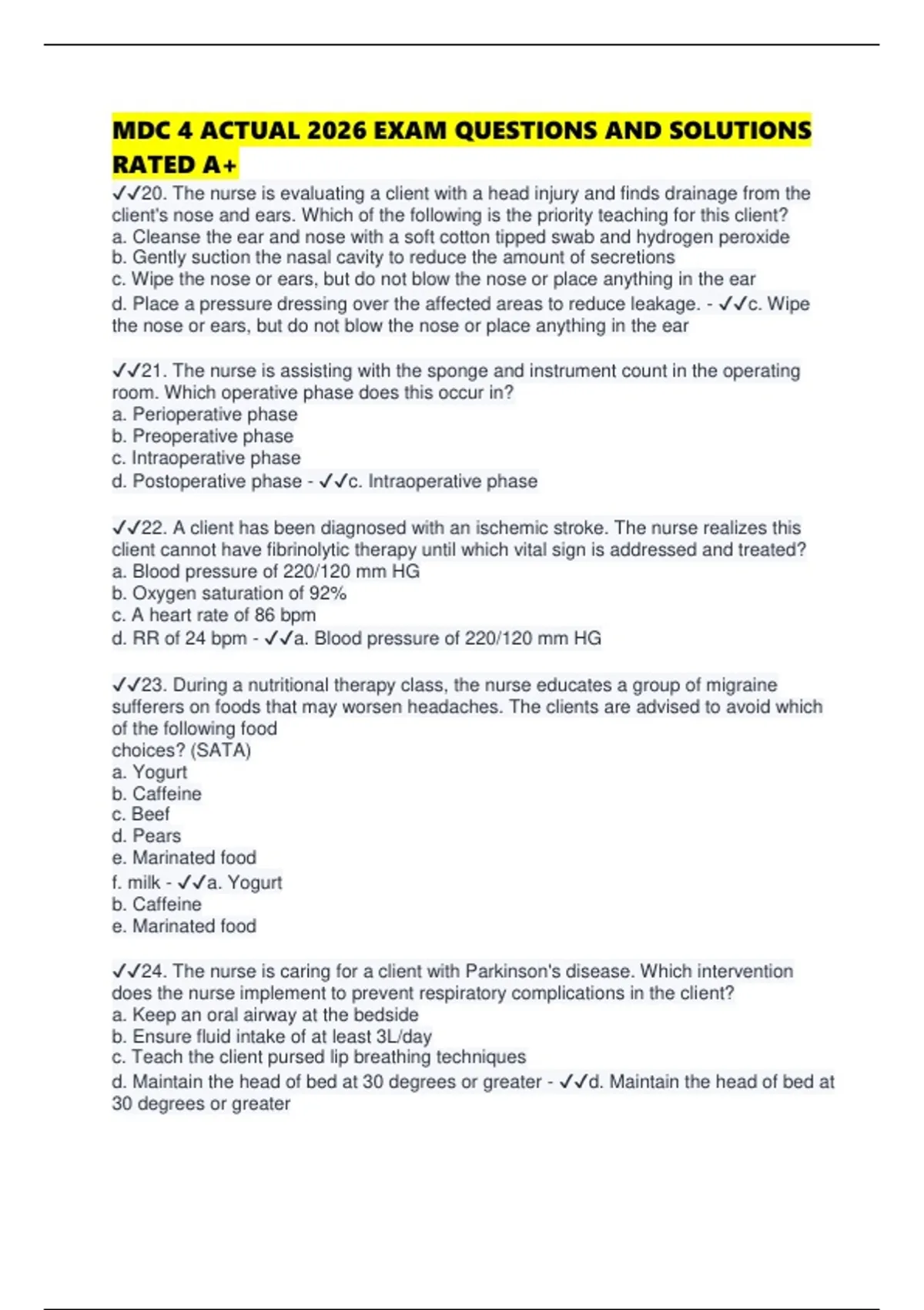 MDC 4 ACTUAL 2026 EXAM QUESTIONS AND SOLUTIONS RATED A+