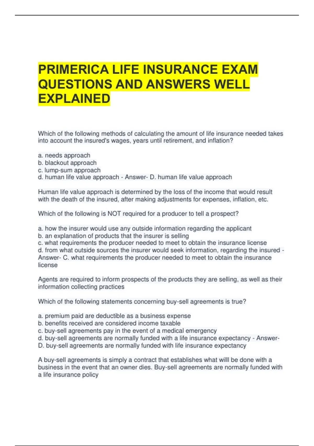 d. buy-sell agreements are normally funded with a life insurance expectancy - Answer-