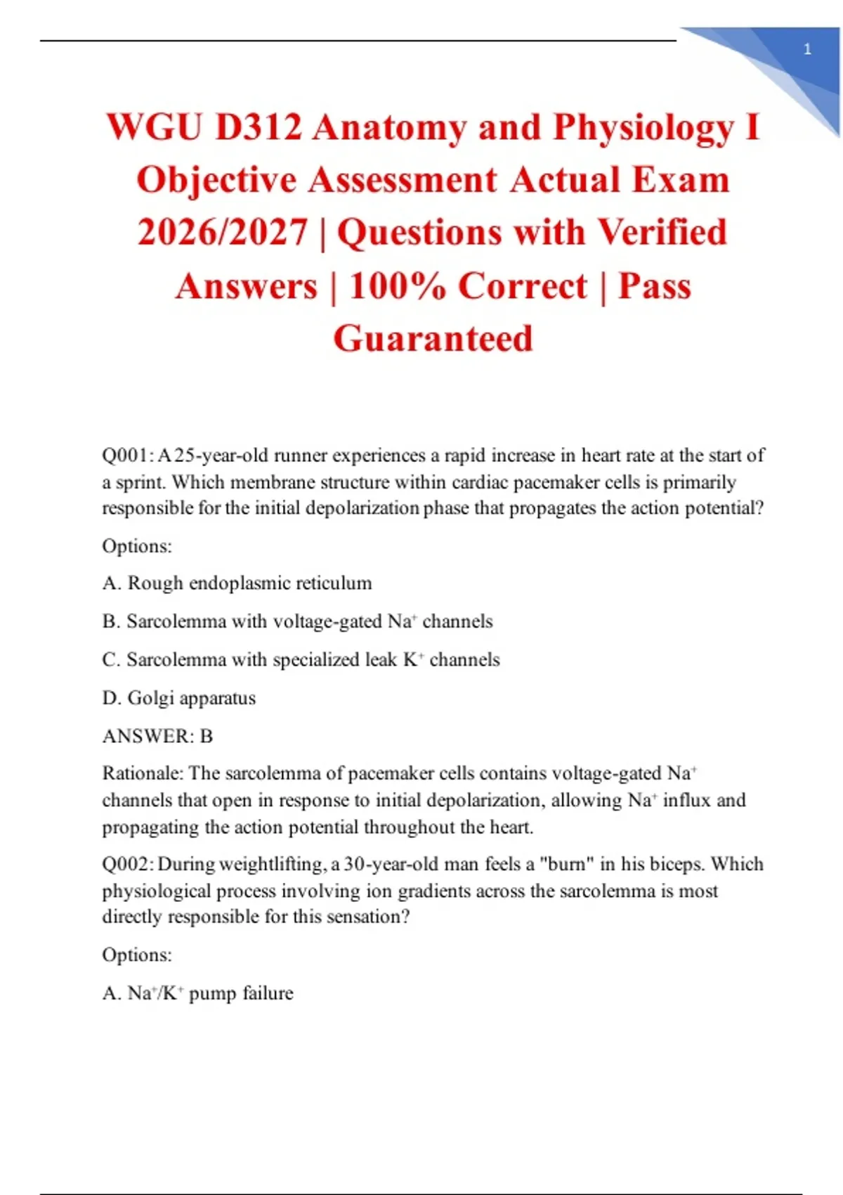 WGU D312 ANATOMY AND PHYSIOLOGY I OBJECTIVE ASSESSMENT ACTUAL EXAM 2026/2027 | PASS GUARANTEED Prepare with the actual WGU Anatomy & Physiology Assessment - Pass Guaranteed! This resource contains actual exam questions and verified answers for the 2026/2027 WGU D312 Anatomy and Physiology I Objective Assessment. Guaranteed to help you pass or your money back. WHAT'S INCLUDED: • Actual Assessment Questions from D312 • 100% Verified Answers with anatomy rationales • A&P I Content tested on the actual exam • Body Systems Material from the real test • 80-Page Professional PDF – Instant digital download • PASS GUARANTEE – Confidence in your success KEY FEATURES: • Actual Exam Content – Real WGU D312 A&P questions • Pass Guarantee – Your success assured • Time-Saving – Study exactly what's on the exam • Score Improvement – Know the actual exam format • Updated for 2026/2027 – Current WGU curriculum ACTUAL EXAM TOPICS: Human Anatomy – Actual exam questions Body Systems – Real test scenarios Physiology Basics – A&P I content Medical Applications – Practice questions DETAILS: Course: D312 Anatomy and Physiology I University: Western Governors University (WGU) Exam: Actual Objective Assessment Year: 2026/2027 Format: PDF (Printable, Searchable) Delivery: Instant Download Guarantee: Pass Guaranteed