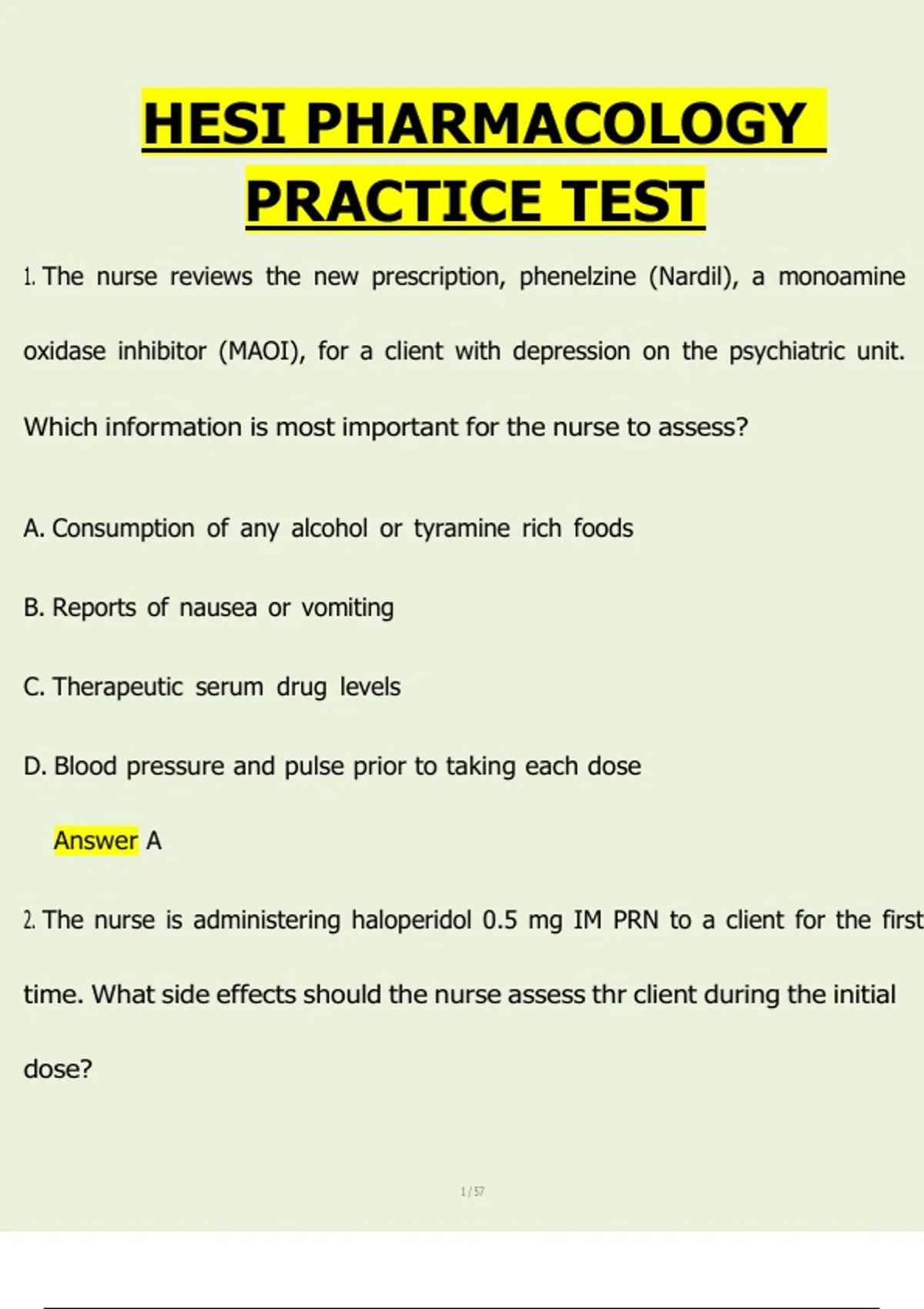 1. The nurse reviews the new prescription, phenelzine (Nardil), a monoamine