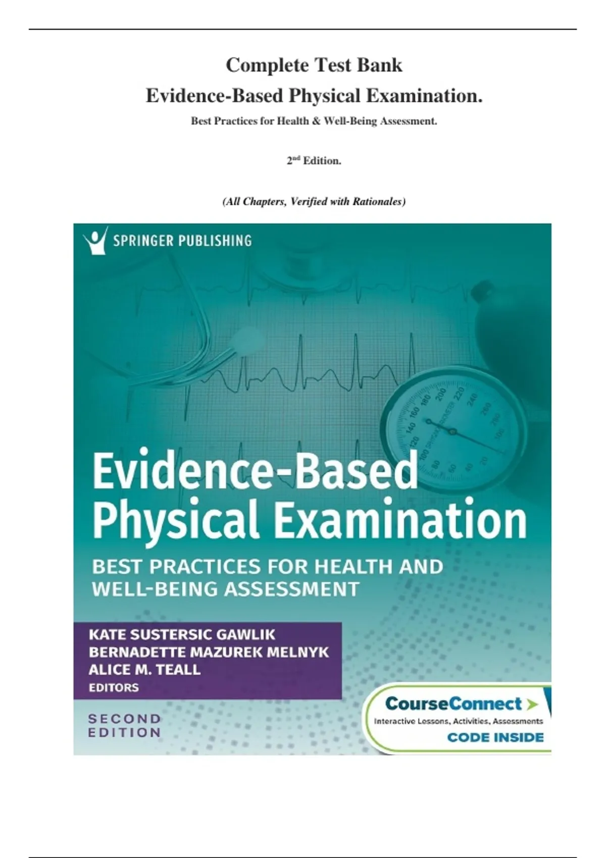Complete Test Bank Evidence-Based Physical Examination. Best Practices for Health & Well-Being Assessment. 2nd Edition. (All Chapters, Verified with Rationales)