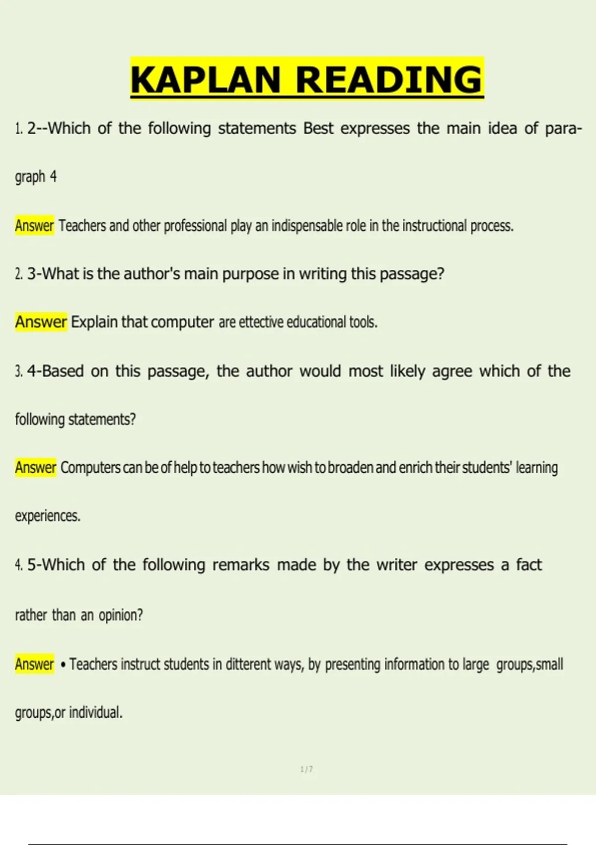 Kaplan Reading & Comprehension Exam 2025 – Complete Study Guide with Strategies, Practice Questions & Verified Answers