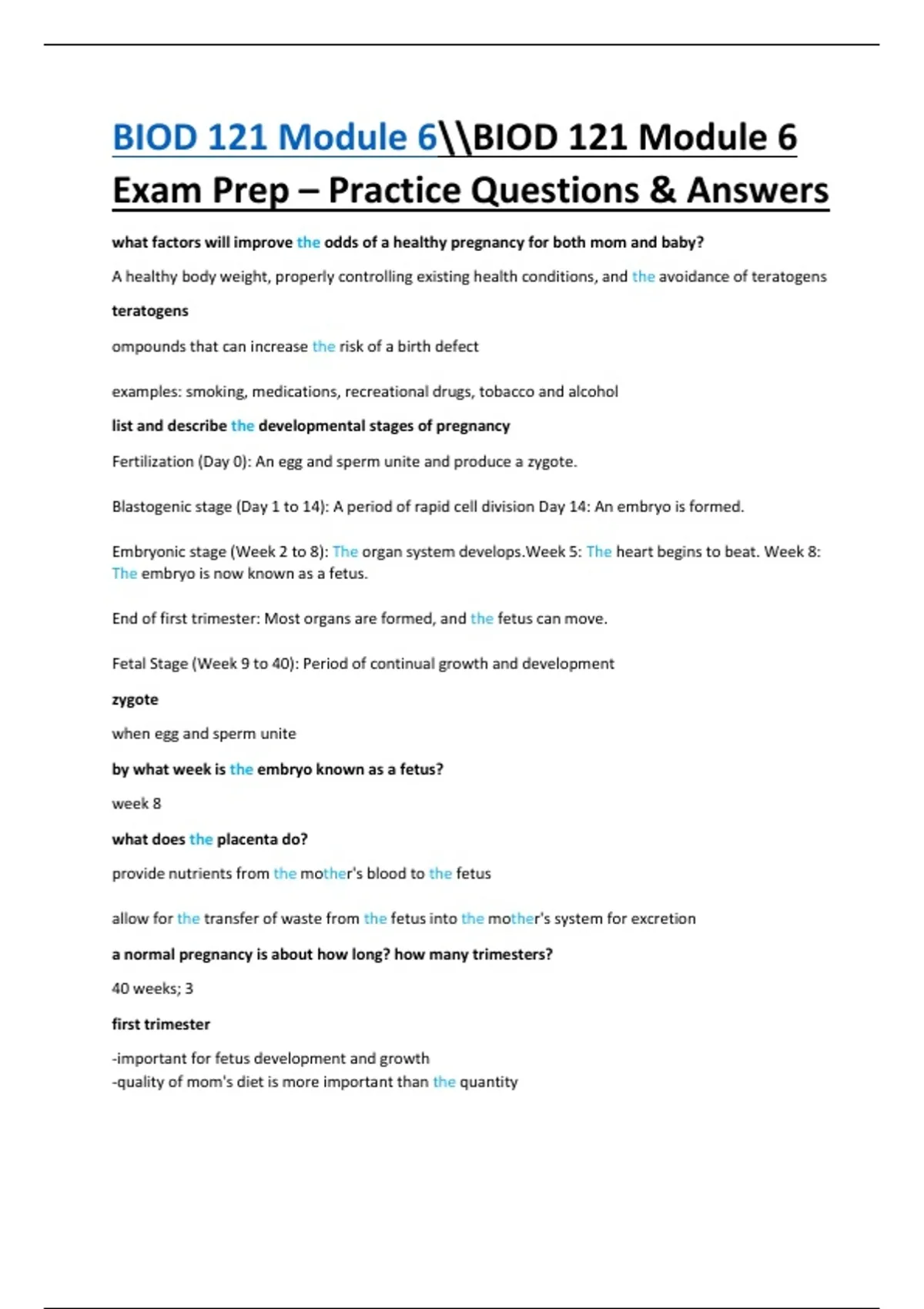 BIOD 121 Module 6 Exam Prep – Practice Questions & Answers