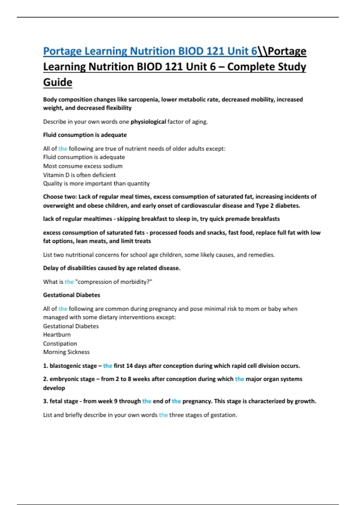 Learning Nutrition BIOD 121 Unit 6 – Complete Study