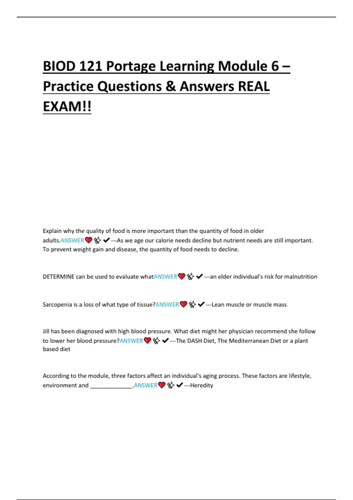BIOD 121 Portage Learning Module 6 – Practice Questions & Answers