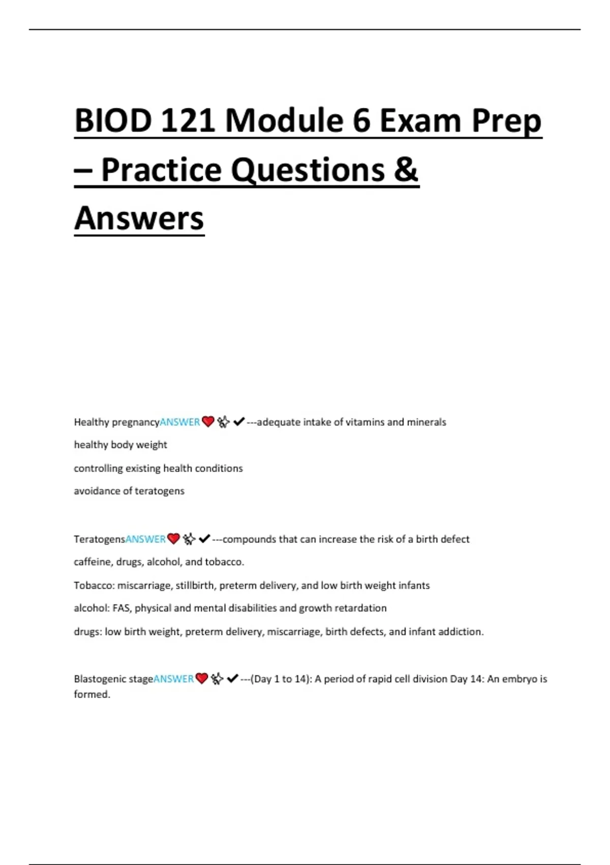 BIOD 121 Module 6 Exam Prep – Practice Questions & Answers