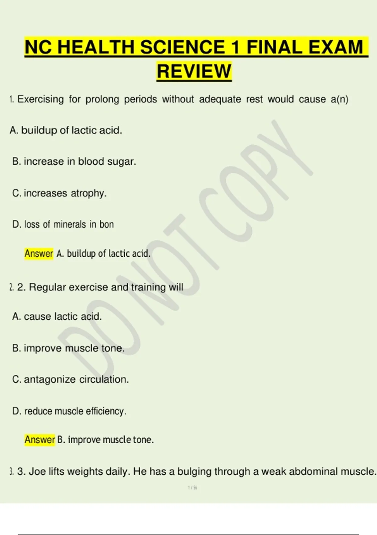 3. 3. Joe lifts weights daily. He has a bulging through a weak abdominal muscle.