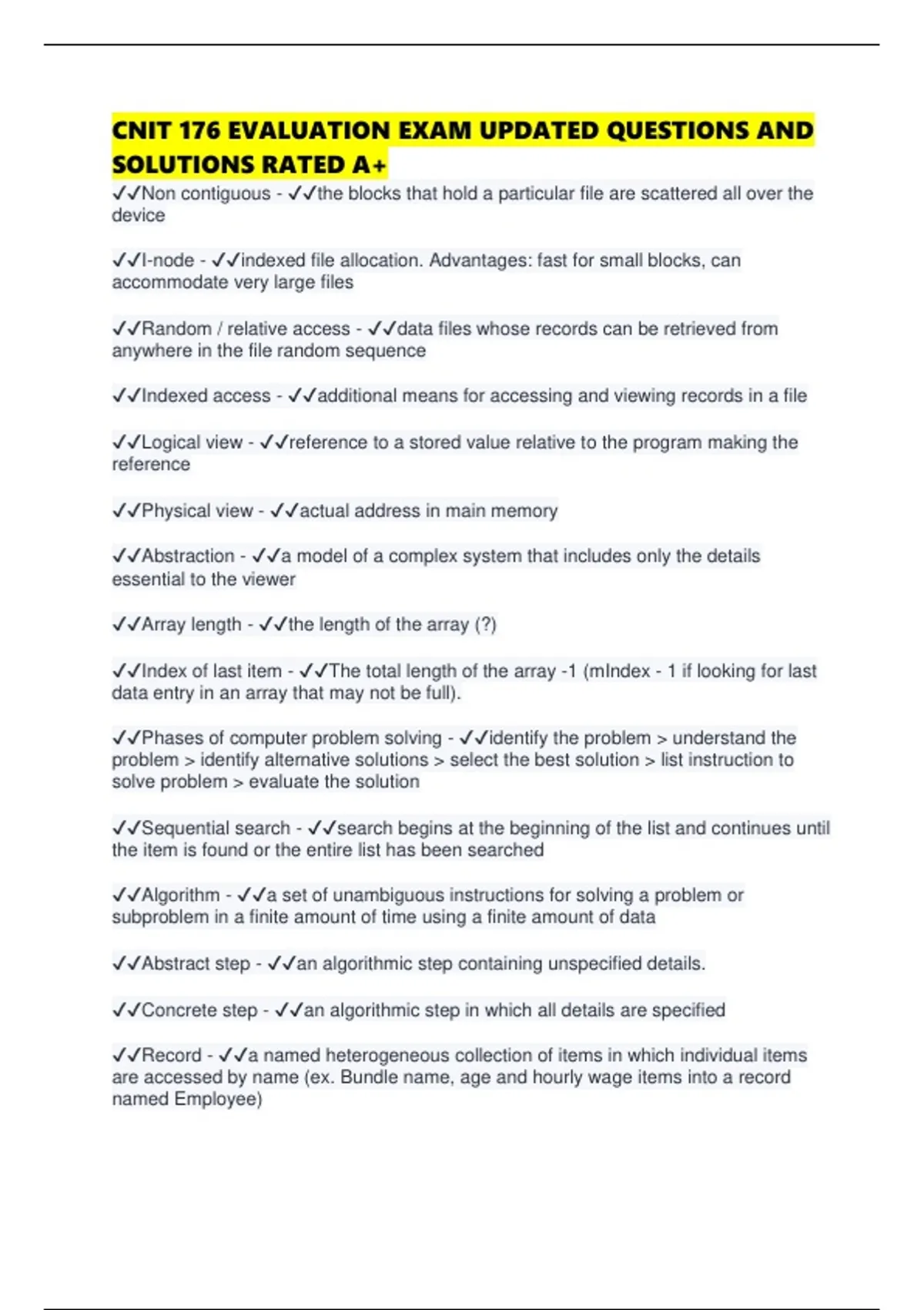 ✔✔Distinguish between and an unsorted list and a sorted list - ✔✔Unsorted = not