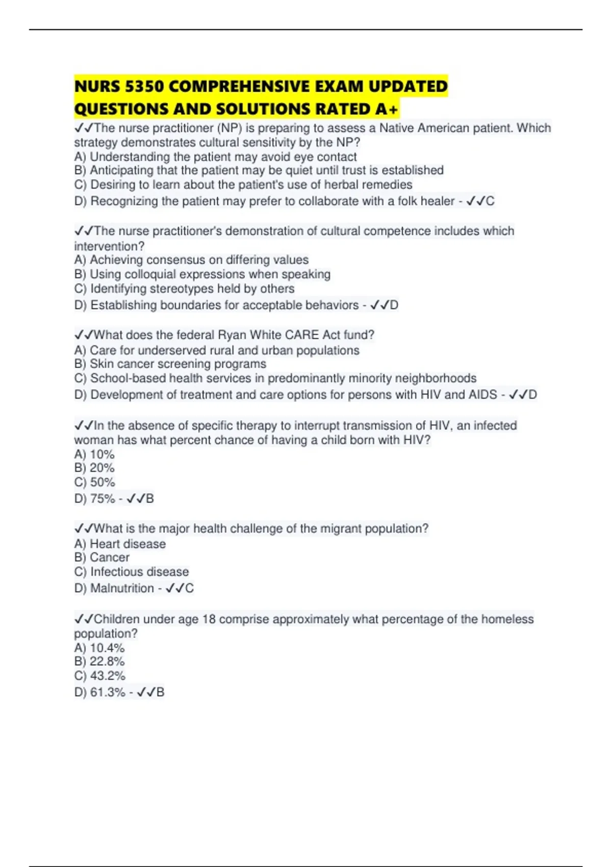 NURS 5350 COMPREHENSIVE EXAM UPDATED QUESTIONS AND SOLUTIONS RATED A+