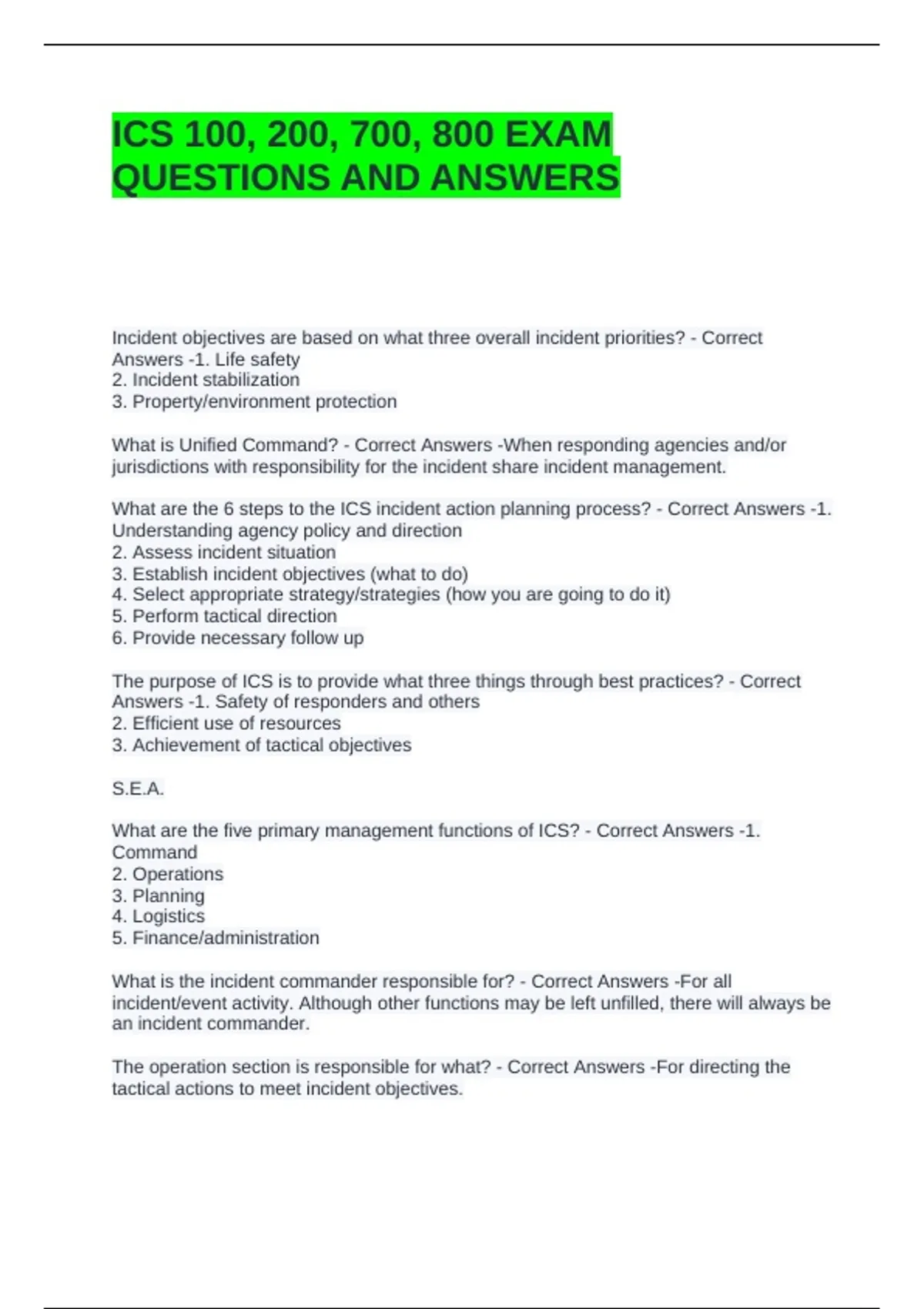 ICS 100, 200, 700, 800 EXAM