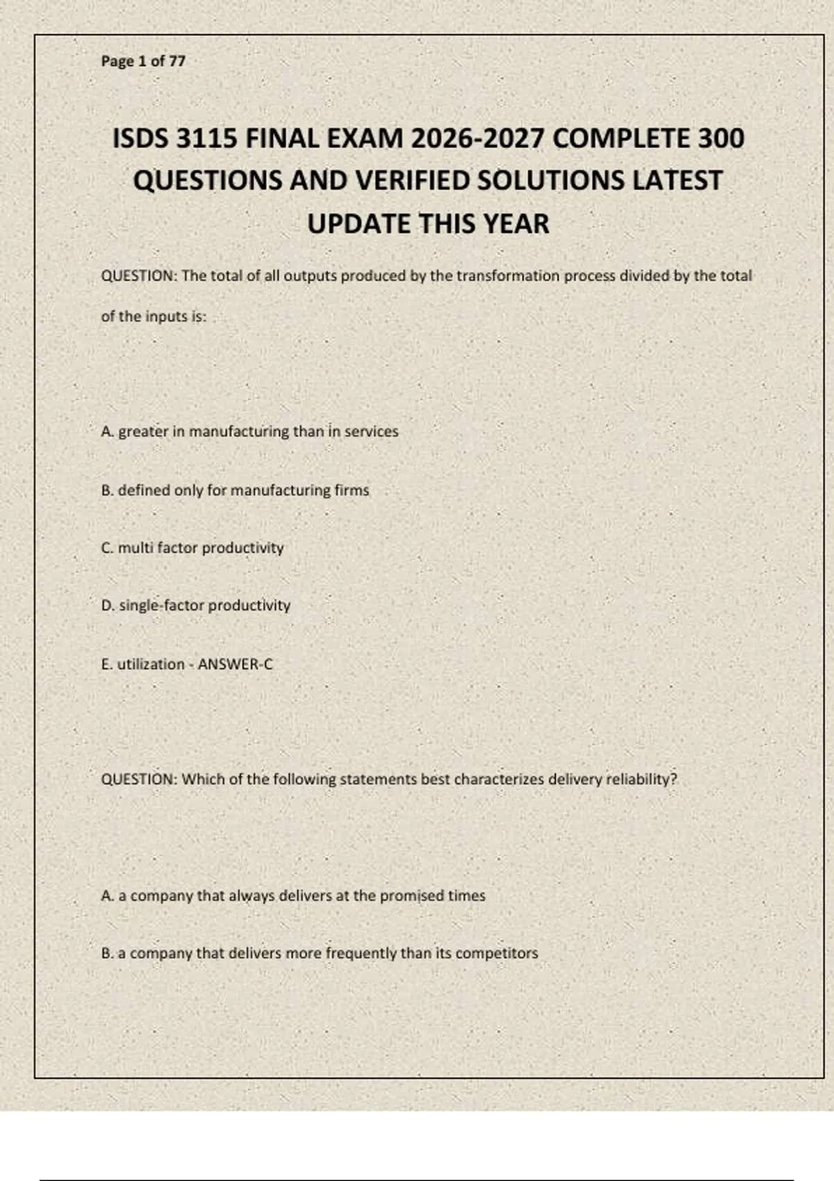 ISDS 3115 FINAL EXAM 2026-2027 COMPLETE 300