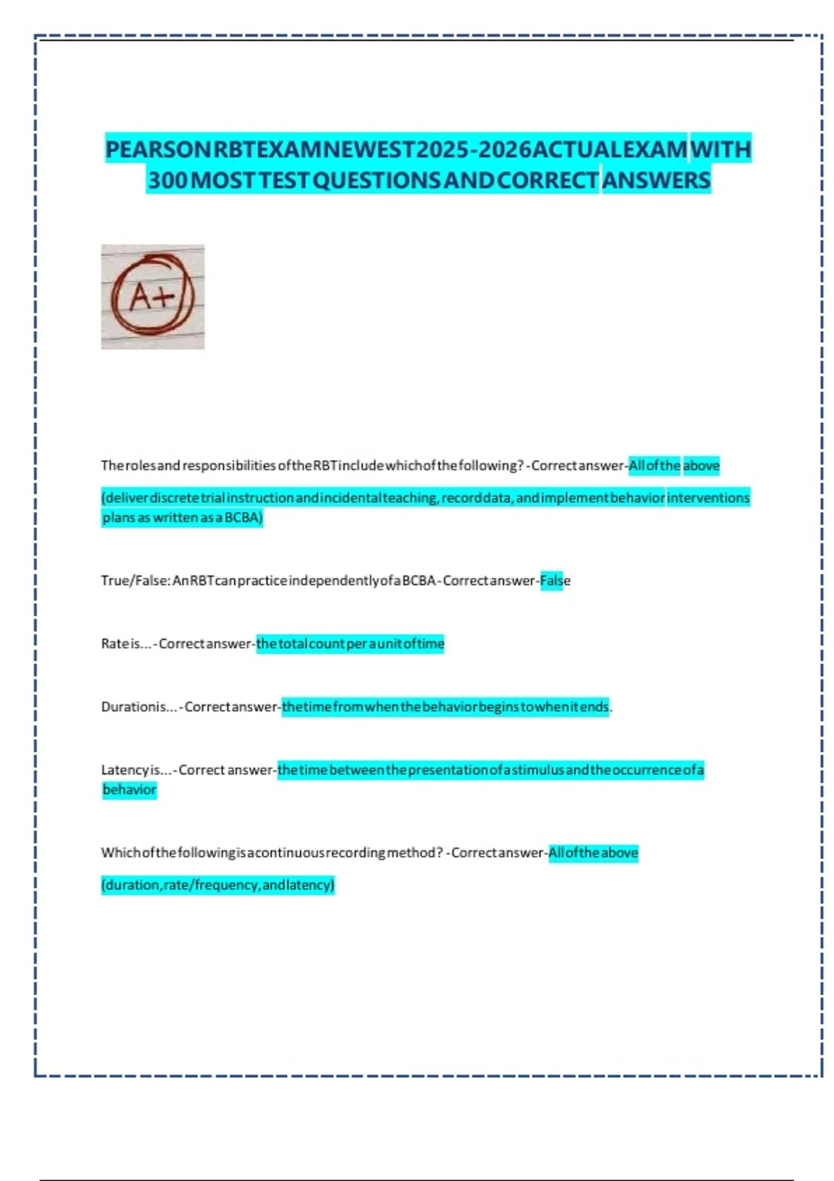 300 MOST TEST QUESTIONS AND CORRECT ANSWERS