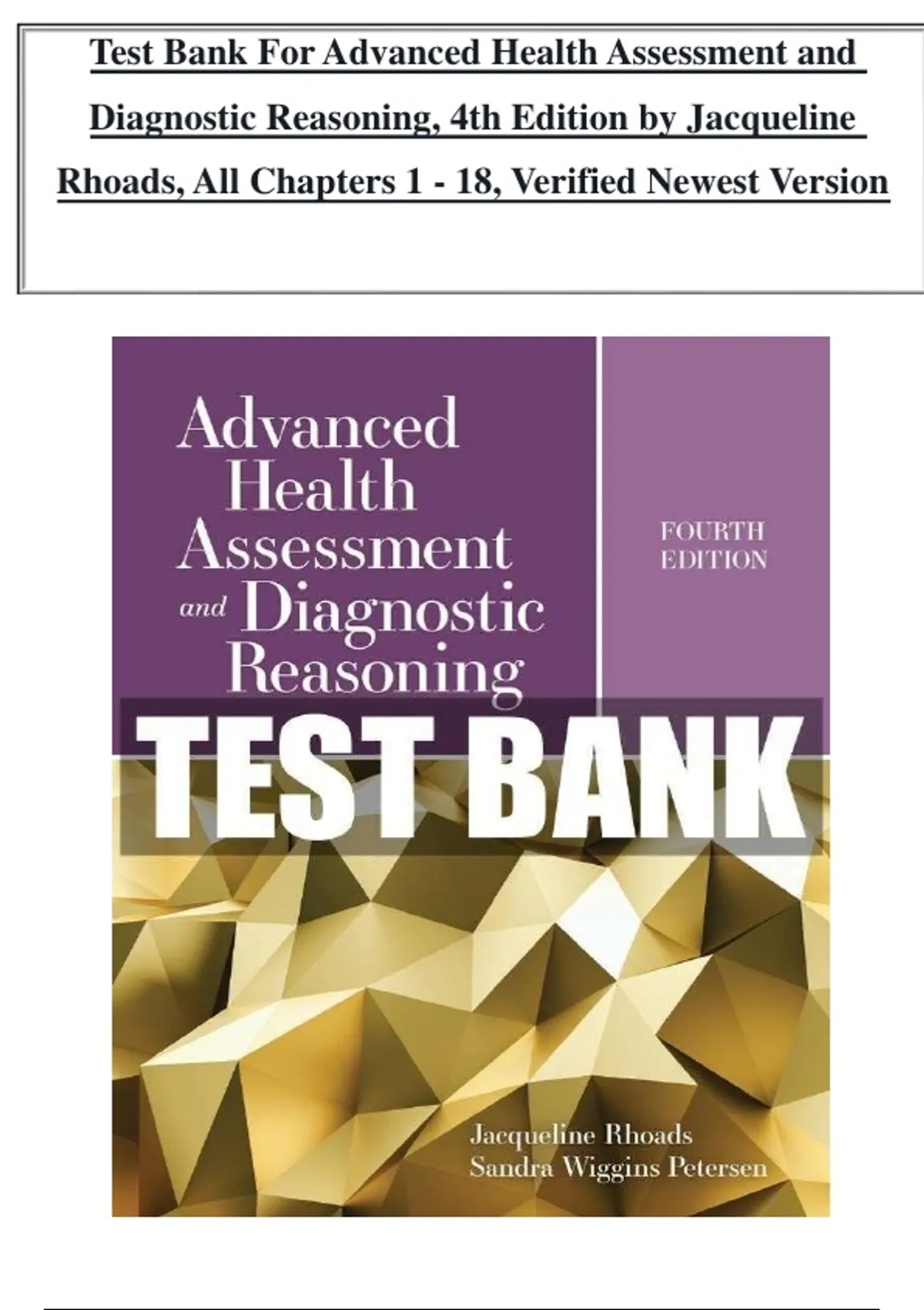 , Test Bank for Advanced Health Assessment and Diagnostic Reasoning 4th Edition Rhoads (Tes