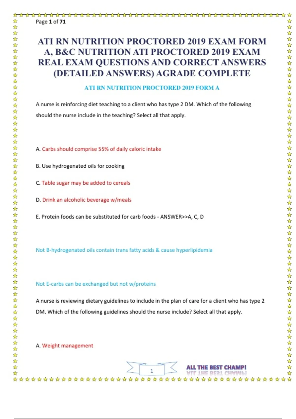 A, B&C NUTRITION ATI PROCTORED 2019 EXAM