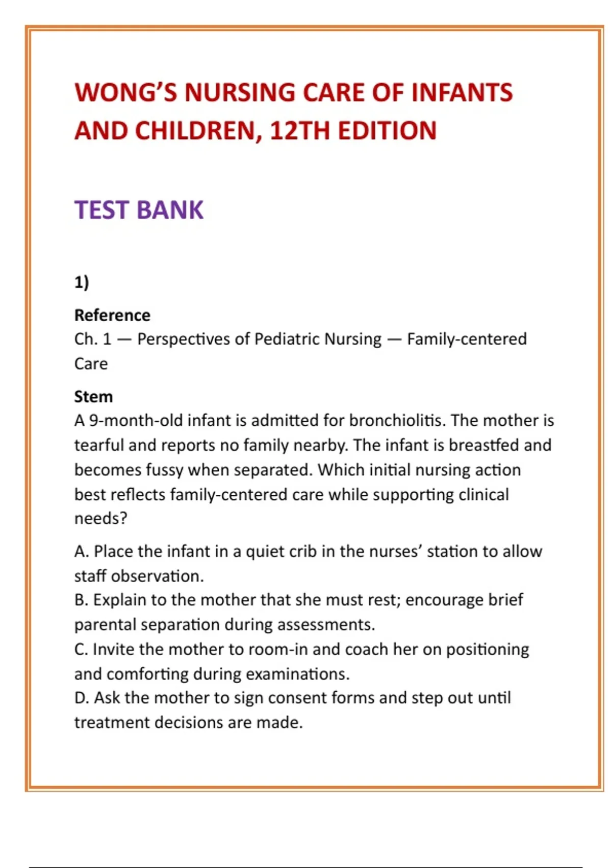 Ch. 1 — Perspectives of Pediatric Nursing — Family-centered