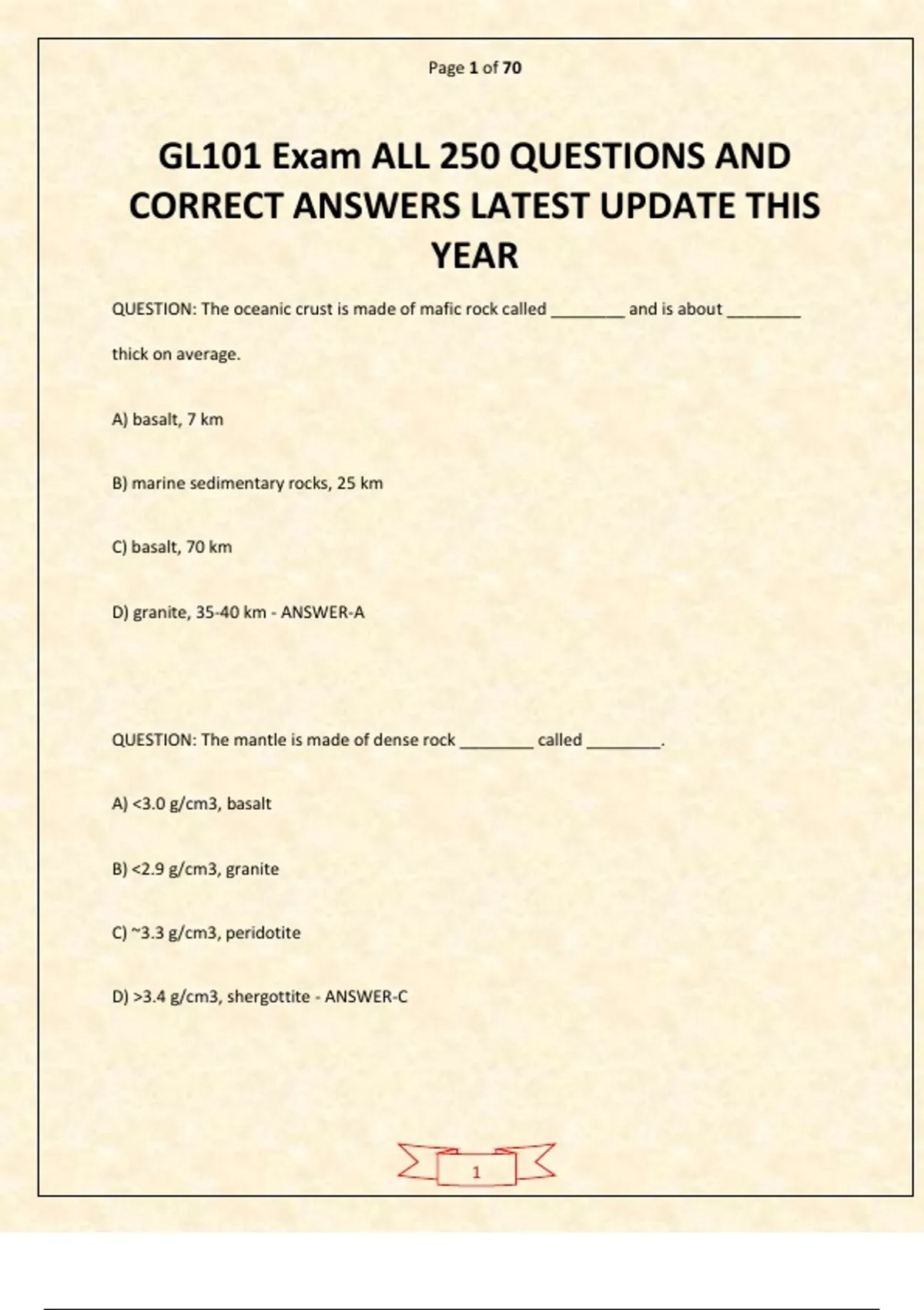 Tap on AVAILABLE IN BUNDLE / PACKAGE DEAL to unlock free bonus exams — save more while getting everything you need! You’ll be glad you did! The GL101 Exam – All 250 Questions and Correct Answers (Latest Update This Year) is a fully updated and comprehensive study resource designed to help students thoroughly prepare for the GL101 Exam. This guide covers essential topics, including foundational principles, key concepts, terminology, practical applications, problem-solving strategies, and scenario-based questions. Each question is paired with a verified correct answer, allowing candidates to practice across multiple formats and difficulty levels, reinforcing knowledge and boosting exam readiness. Ideal for students, learners, and professionals preparing for the GL101 Exam, this resource ensures thorough review, effective practice, and confident performance on exam day.