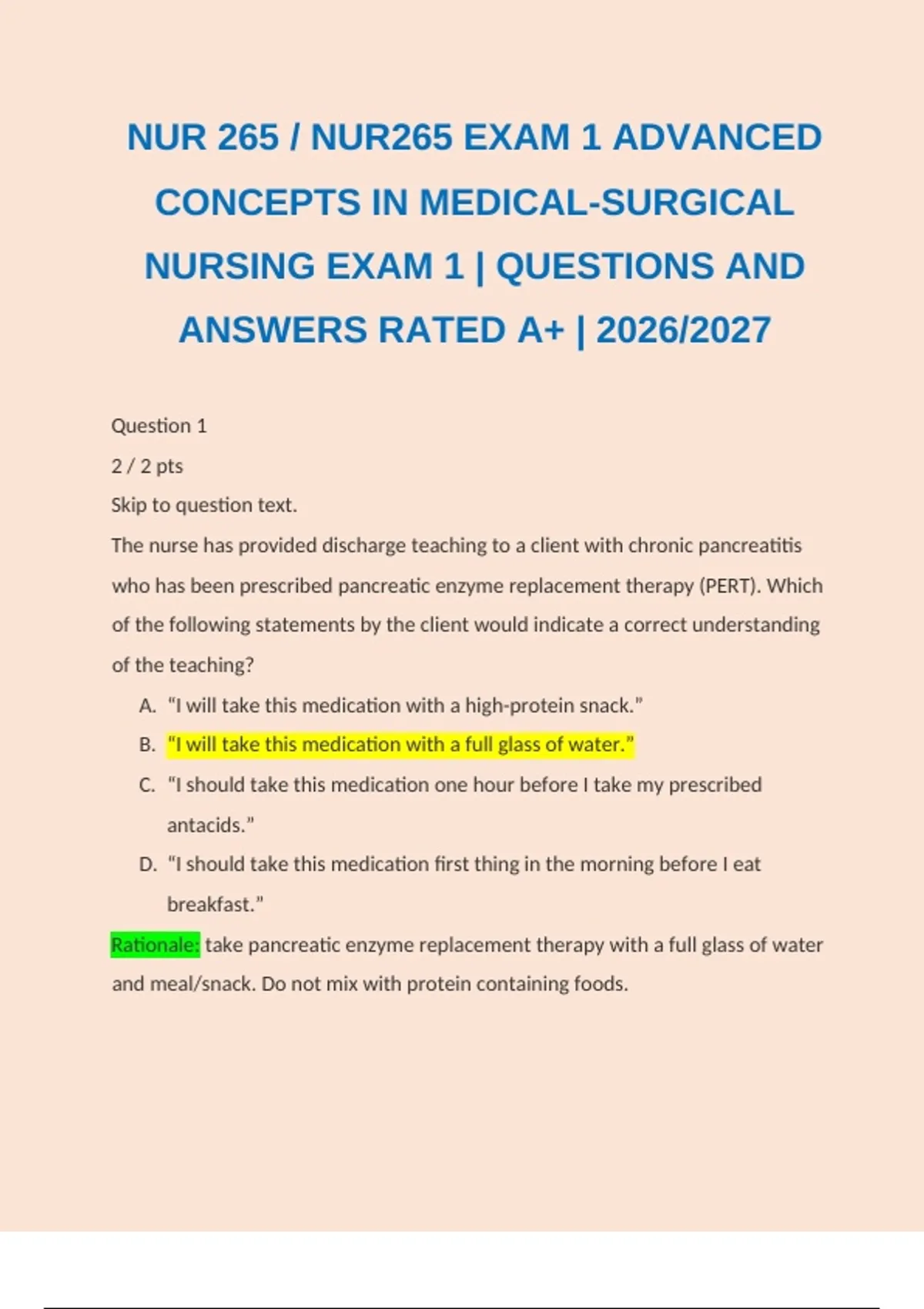 NUR 265 / NUR265 EXAM 1 ADVANCED