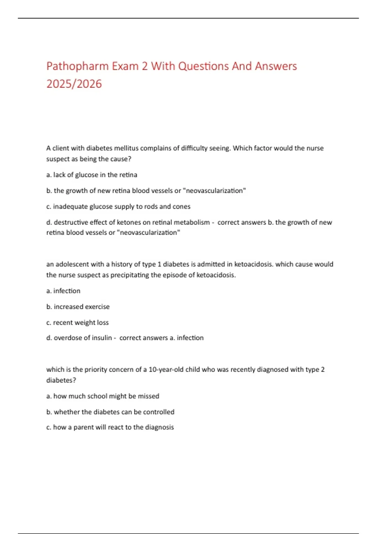 ,d. whether having diabetes means future sterility - correct answers a. how much school might