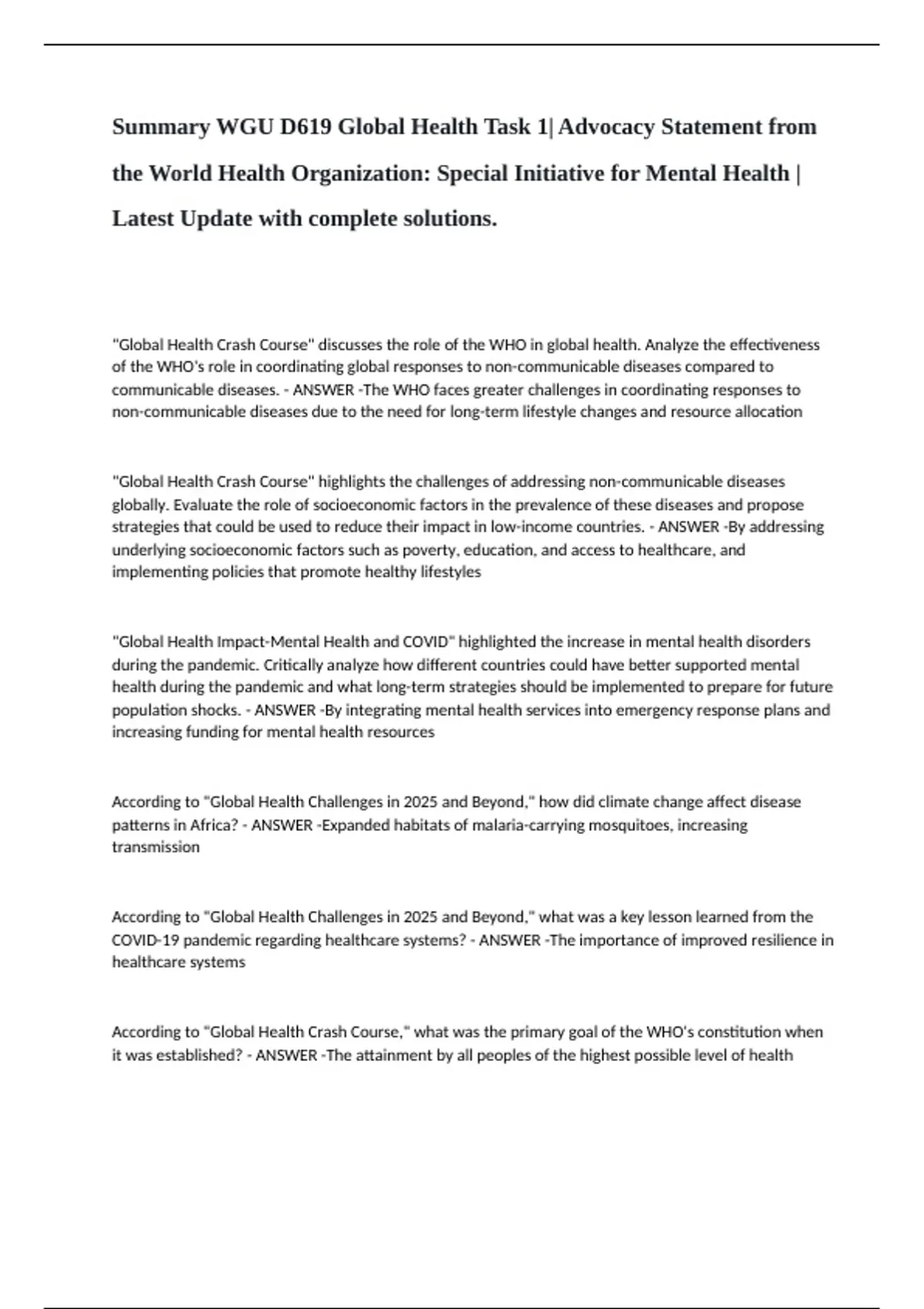 communicable diseases. - ANSWER -The WHO faces greater challenges in coordinating responses to