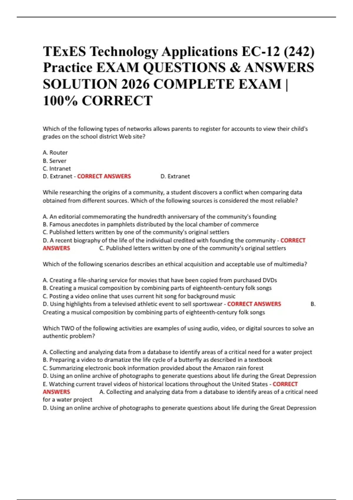 TExES Technology Applications EC-12 (242) Practice EXAM QUESTIONS & ANSWERS SOLUTION 2026 COMPLETE EXAM | 100% CORRECT