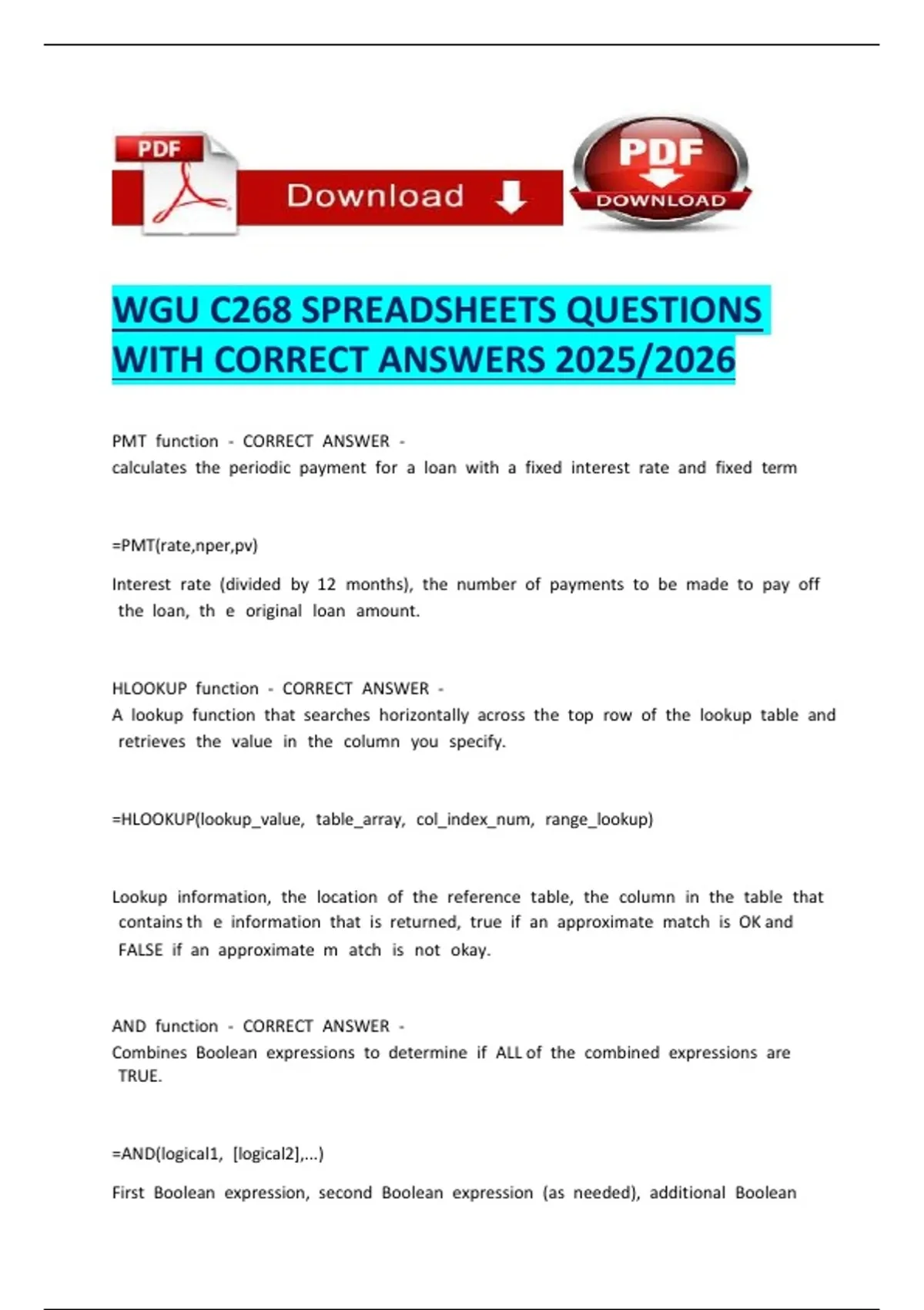 WGU C268 SPREADSHEETS QUESTIONS WITH CORRECT ANSWERS