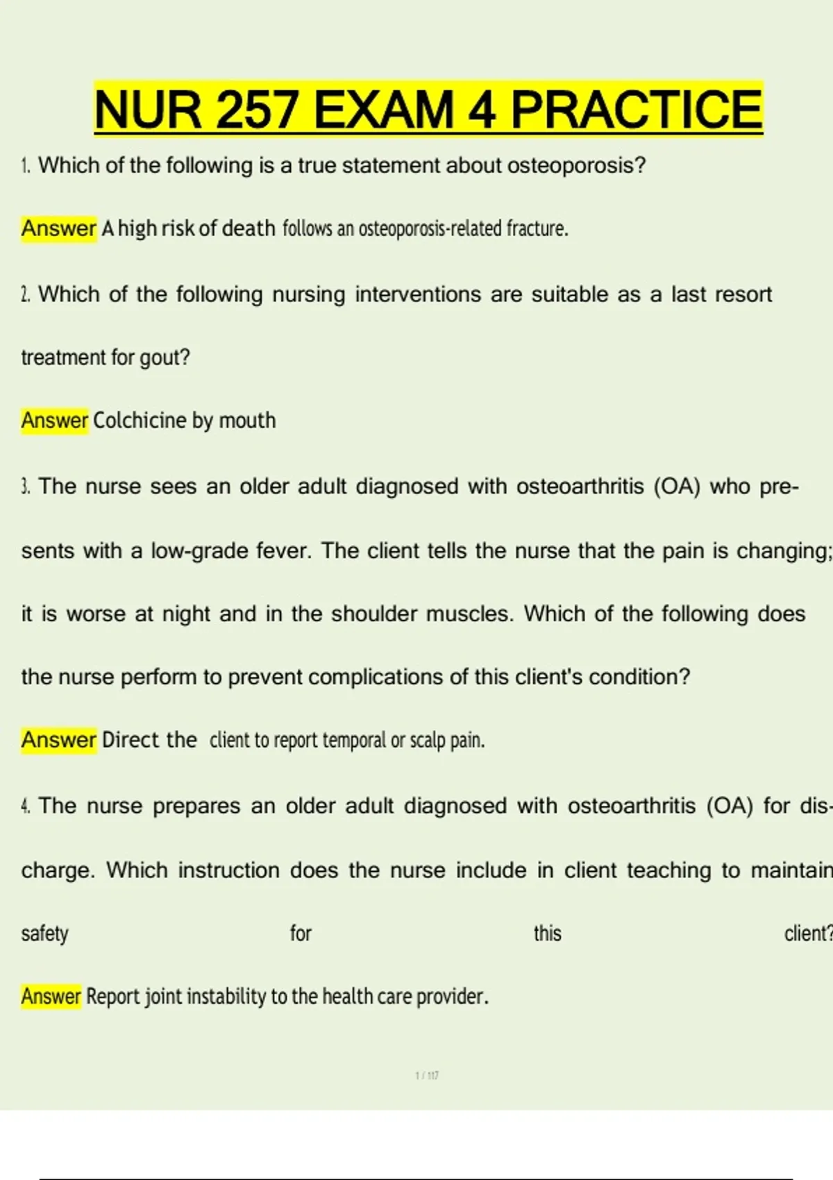 4. The nurse prepares an older adult diagnosed with osteoarthritis (OA) for dis-