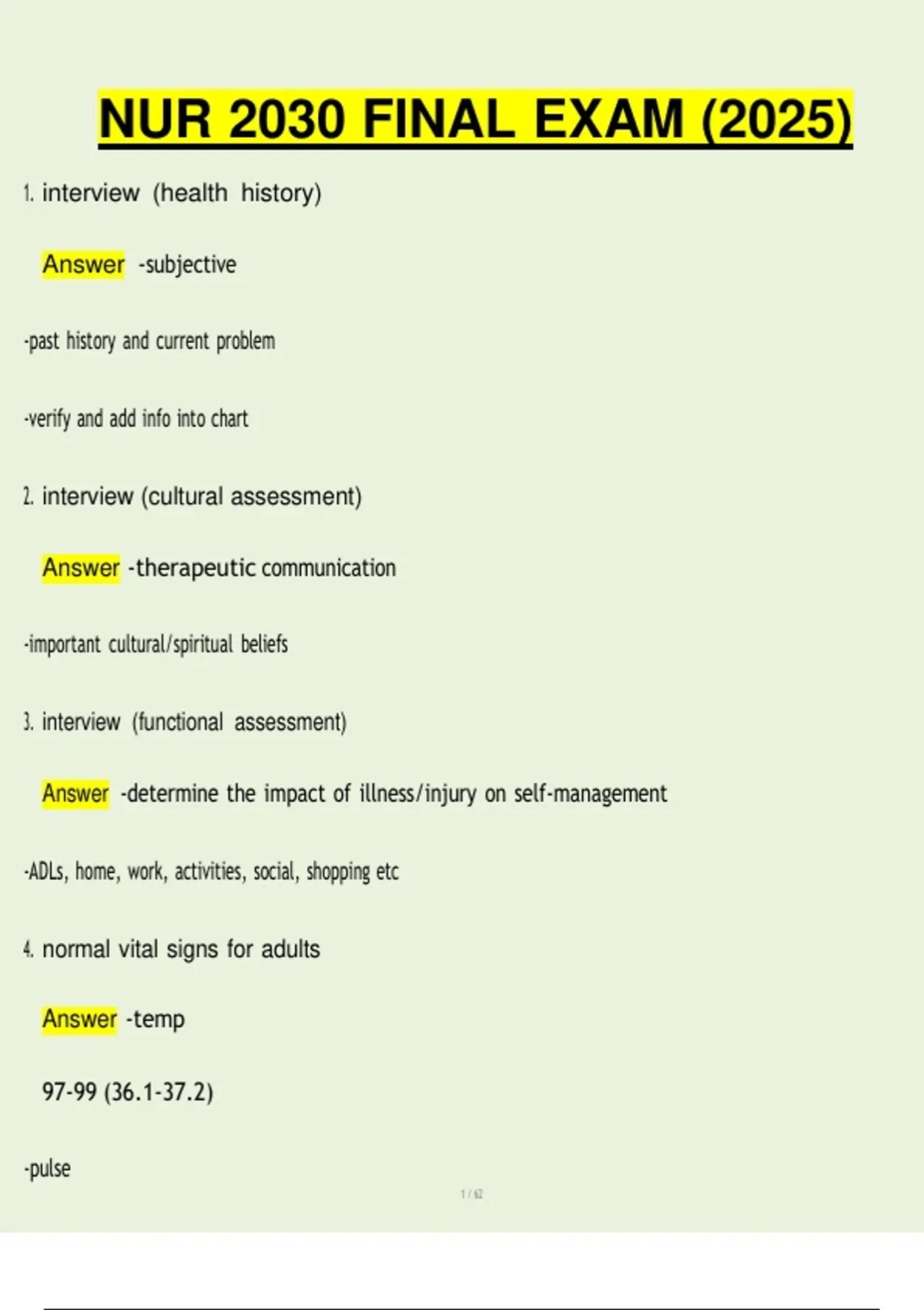 NUR 2030 FINAL EXAM (2025)