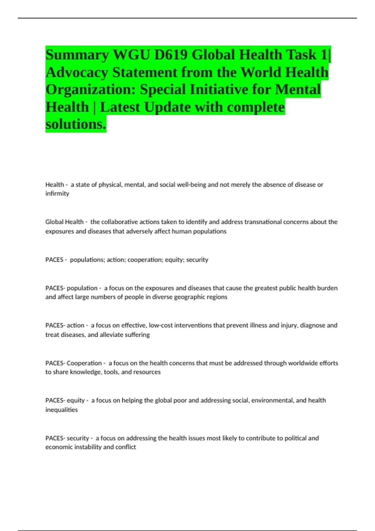 Health - a state of physical, mental, and social well-being and not merely the absence of disease or